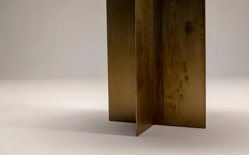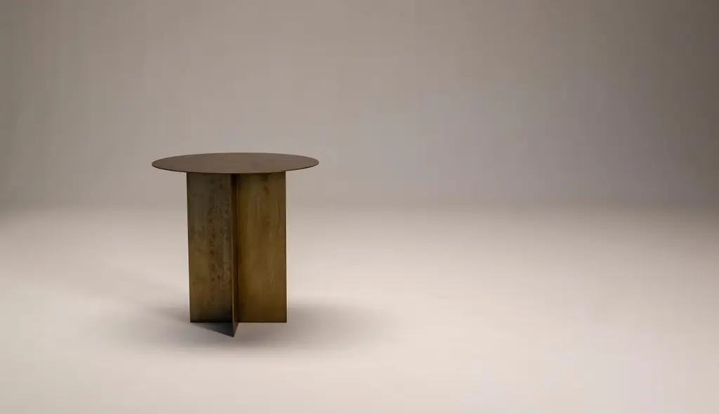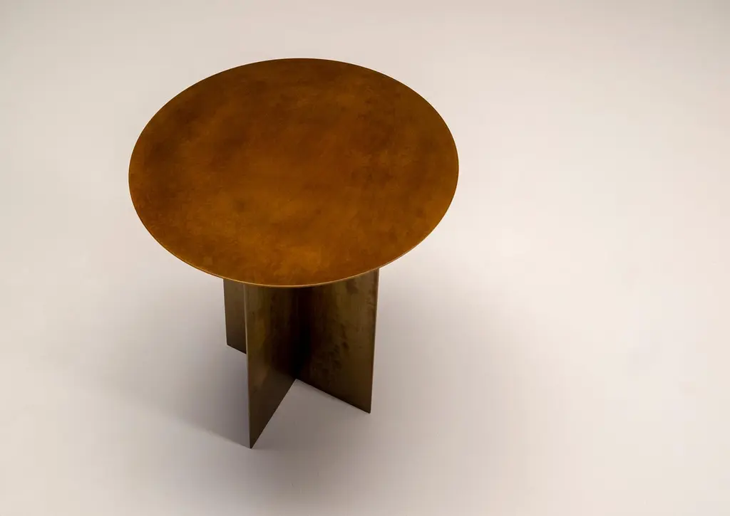 An iron origami that seems light, a game of cross shaped forms and surfaces of any geometric shape define this collection of tables, characterized by a feature common to all my protects: colour.The cross shaped base fits any shape of top, all produced with a 3mm metal plate of customizable colour, a project in the making, a construction game in which the end user is free to create their own custom table, a project within a project.The top could be Round, Oval, Elliptical or Squared with a custom made dimensions. Customer can choose any color from Ral Code. Customer can also choose for different kind of metals, such as Copper or Stinless steel with different price.