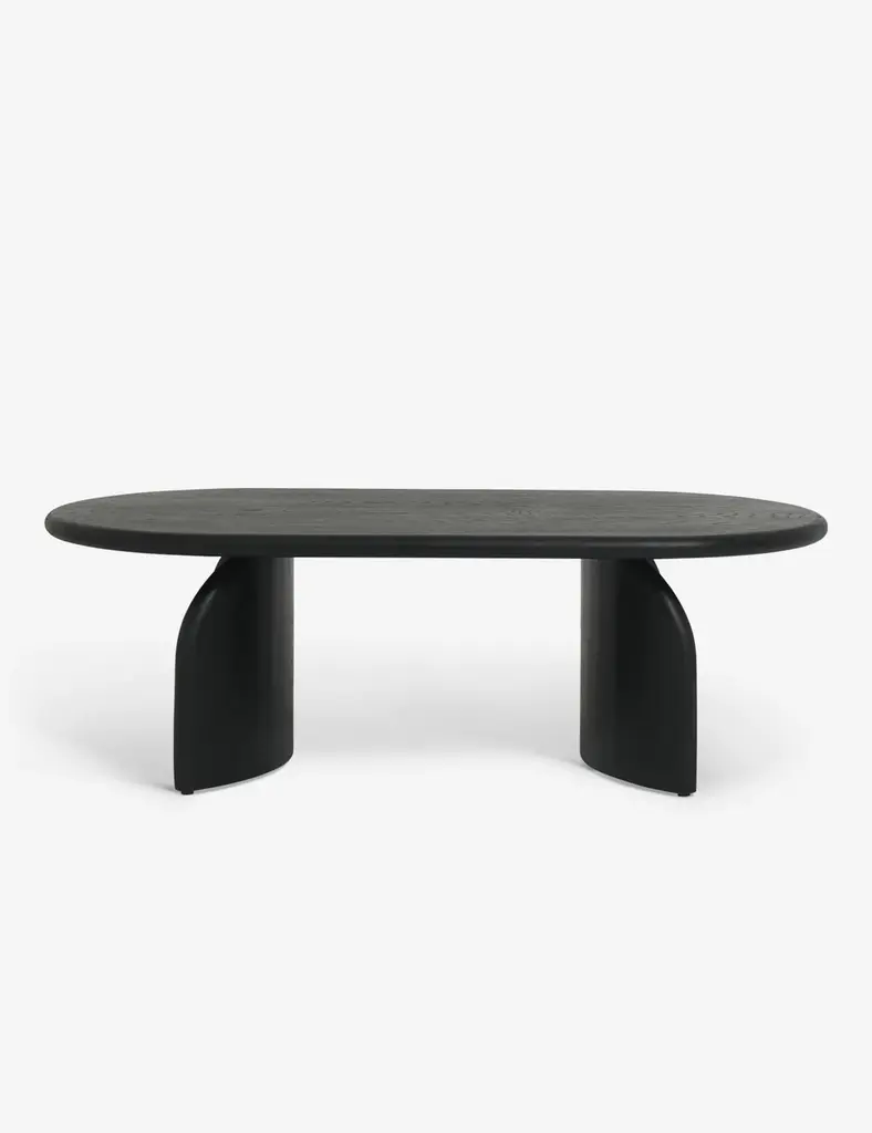 Sculptural and dynamic, the Ada Oval Coffee Table design makes it feel as though its oval tabletop sits in perfect balance atop its curved legs. This piece is constructed from solid oak with beautiful variations in the natural grain. Style this modern wood coffee table with a few books and sculptural accents for an edited look.