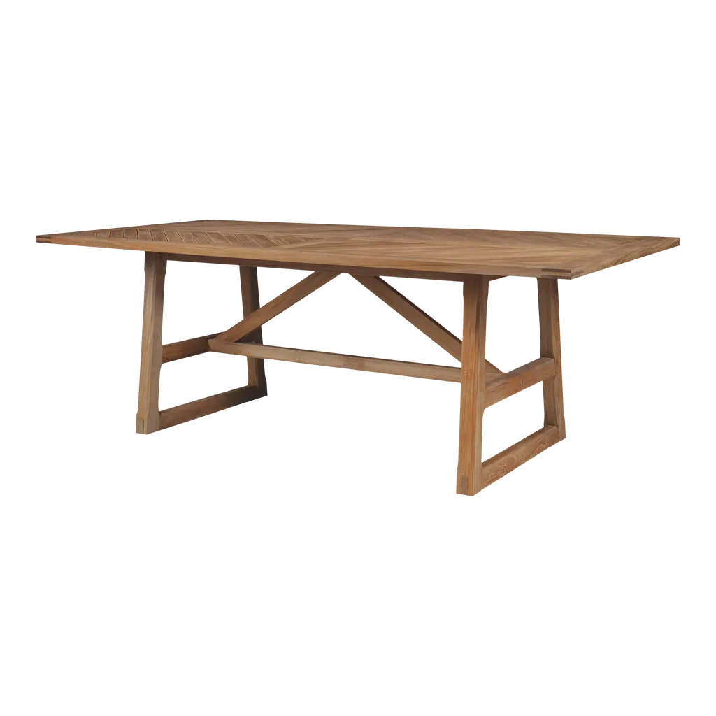 The Addica Elm Wood Coffee Table is presented by Alder & Ore. It exhibits a striking blend of architectural design and modern aesthetics, with an oversized oval top that creates a bold statement, offering ample surface area for displaying decor or hosting gatherings. The trestle base, featuring a distinctive V-shape, adds a touch of structural elegance to the overall design. The slant legs not only provide stability but also expose the meticulous joinery