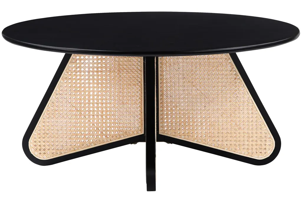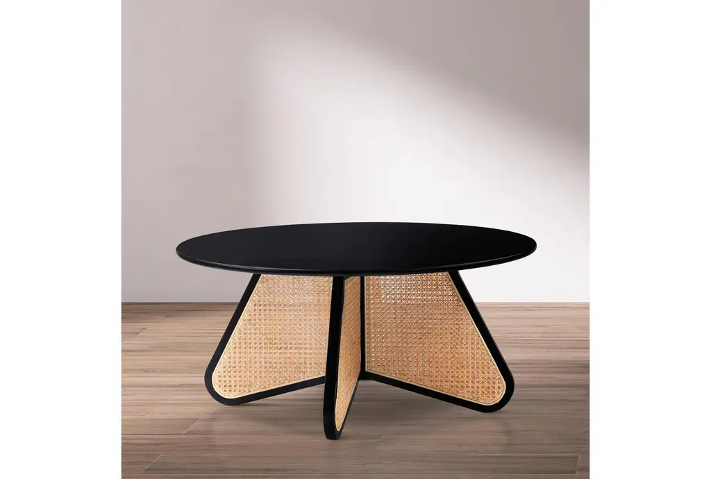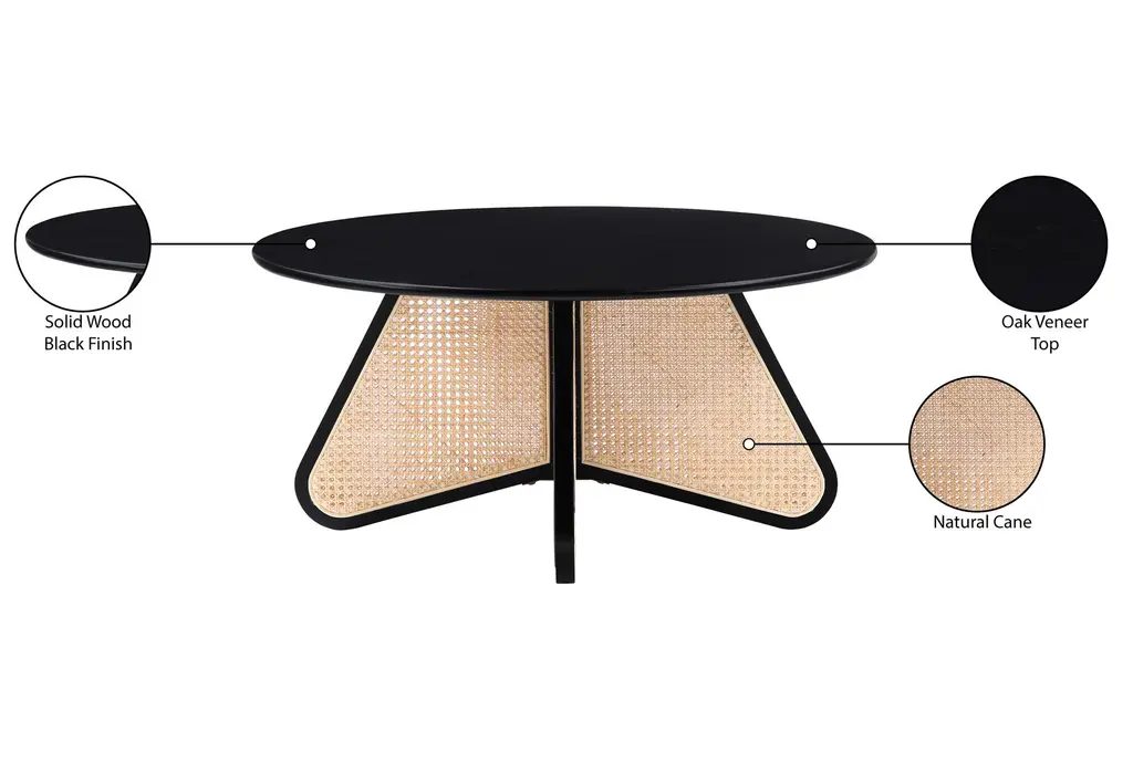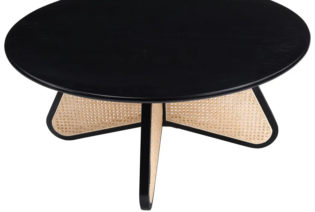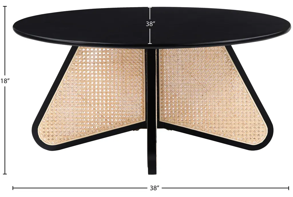 Adeline Modern Black + Cane 38" Round Coffee Table