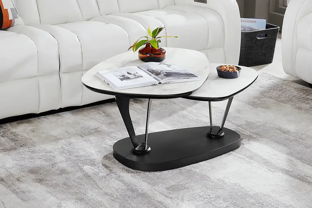 Designed with timeless clarity in mind, the Aeon cocktail table pairs glass and metal in a striking balance, its clean lines and open silhouette create a light, modern presence. A smooth swivel feature adds versatility, allowing the nested glass surfaces to shift with ease for a functional twist on timeless style.