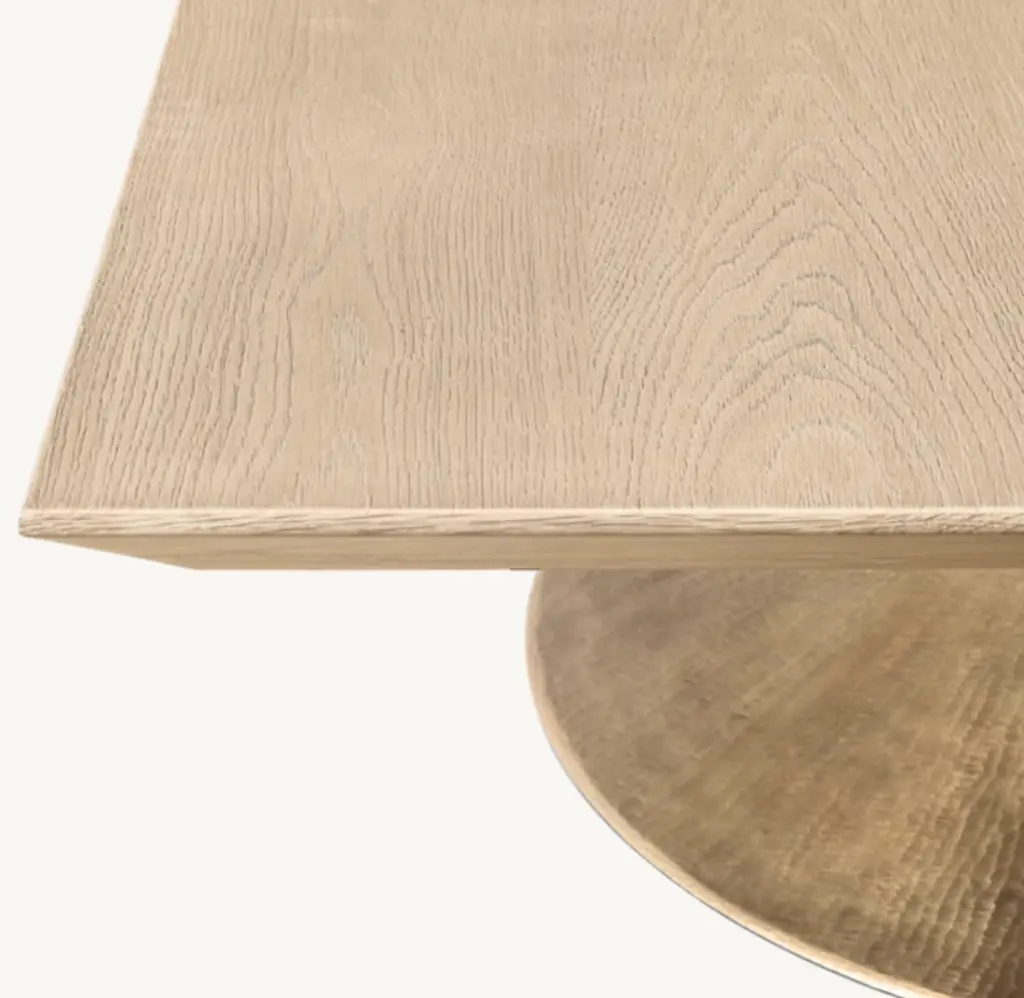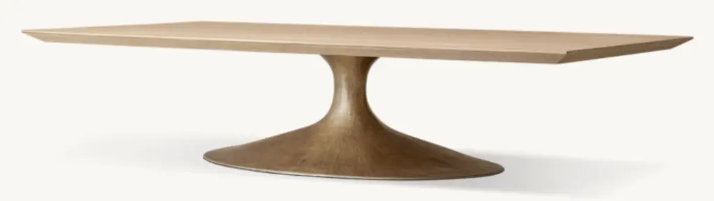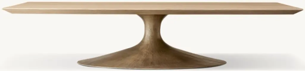 Paying homage to the sweeping lines of midcentury furnishings, our table is a study in simplicity. Defined by its balanced proportions and arching, sculptural curves, our interpretation pairs a cast steel pedestal base with a beveled-edge oak or walnut top. SHOP THE ENTIRE COLLECTION