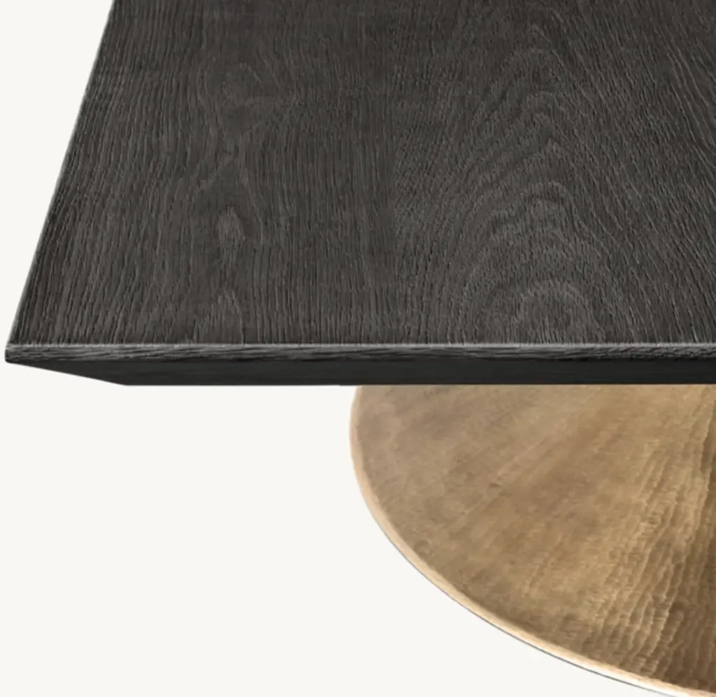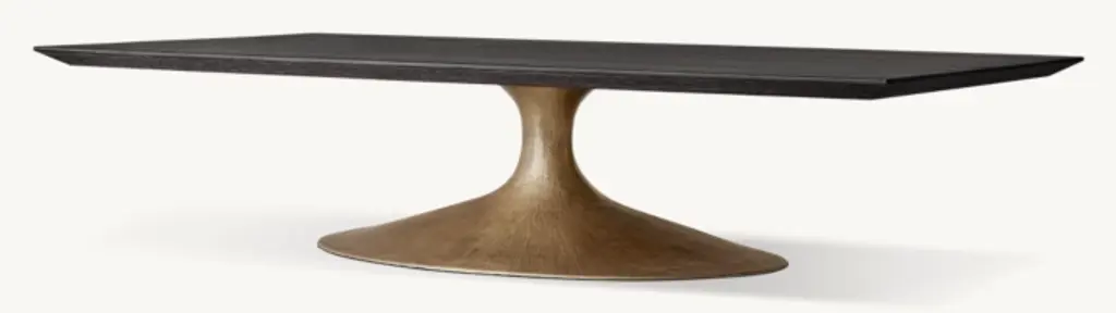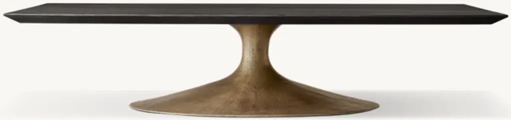 Paying homage to the sweeping lines of midcentury furnishings, our table is a study in simplicity. Defined by its balanced proportions and arching, sculptural curves, our interpretation pairs a cast steel pedestal base with a beveled-edge oak or walnut top. SHOP THE ENTIRE COLLECTION