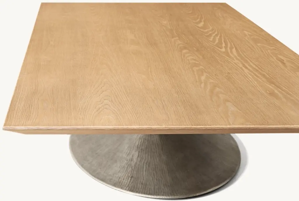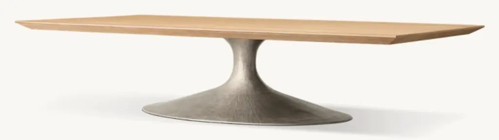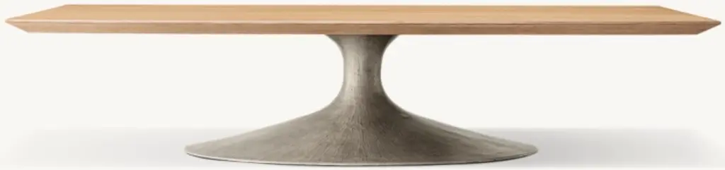 Paying homage to the sweeping lines of midcentury furnishings, our table is a study in simplicity. Defined by its balanced proportions and arching, sculptural curves, our interpretation pairs a cast steel pedestal base with a beveled-edge oak or walnut top. SHOP THE ENTIRE COLLECTION