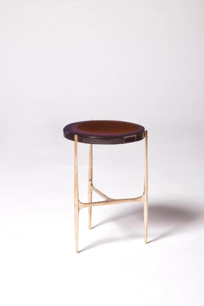 Agatha coffee table by Draga & AurelDimensions: W 24 x D 24 x H 56Top Ø 24 cmMaterials: Resin and bronzeThe Agatha coffee tables are featured by irregular circular tops of transparent andcolorful resin sit on a bronze frame with a staggered placement, inspired by clustersof wildflowers.The table tops’ process of creating requires a special technique of casting resinentirely made by hand in the Draga & Aurel laboratory of Como. Playing with vibrantcolor combinations, also incorporating any random mistakes and accidents, thematerial is melted into several layers creating fluid, deep, unique table tops. Thestructure in bronze is made by casting. Thanks to a handcrafted, artistic process thecoffee tables are featured by a special matte effect in earth-colored.Founded in 2007 in the town of Como, Italy, Draga & Aurel is a multidisciplinary design studio that works along the spectrum of furniture, textile and interior design. Draga Obradovic began her career in the fashion industry, first working in London and Milan as a textile designer before eventuallysettling in Como. Aurel K. Basedow graduated from Milan’s Accademia di Belle Arti with a degree in Fine Arts, having previously trained as a carpenter and woodworker. Thanks to their sympathetic methods, combined with an artist’s approach to material and composition Draga & Aurel are widelyrecognized for their clever reinvention of bespoke vintage design pieces.Their showing at 2009 Salone del Mobile introduced the duo to the world stage; it followed the partnerships with several companies that have pushed the pair’s domain beyond the reinvention of singular vintage pieces. While interior projects have expanded their sought after aesthetic into the realm of hospitality and lifestyle. In occasion of the 2019 Milan Design Week the design duo presented Transparency Matters, an exhibition of limited edition pieces, entirely fabricated by hand in their Como atelier.