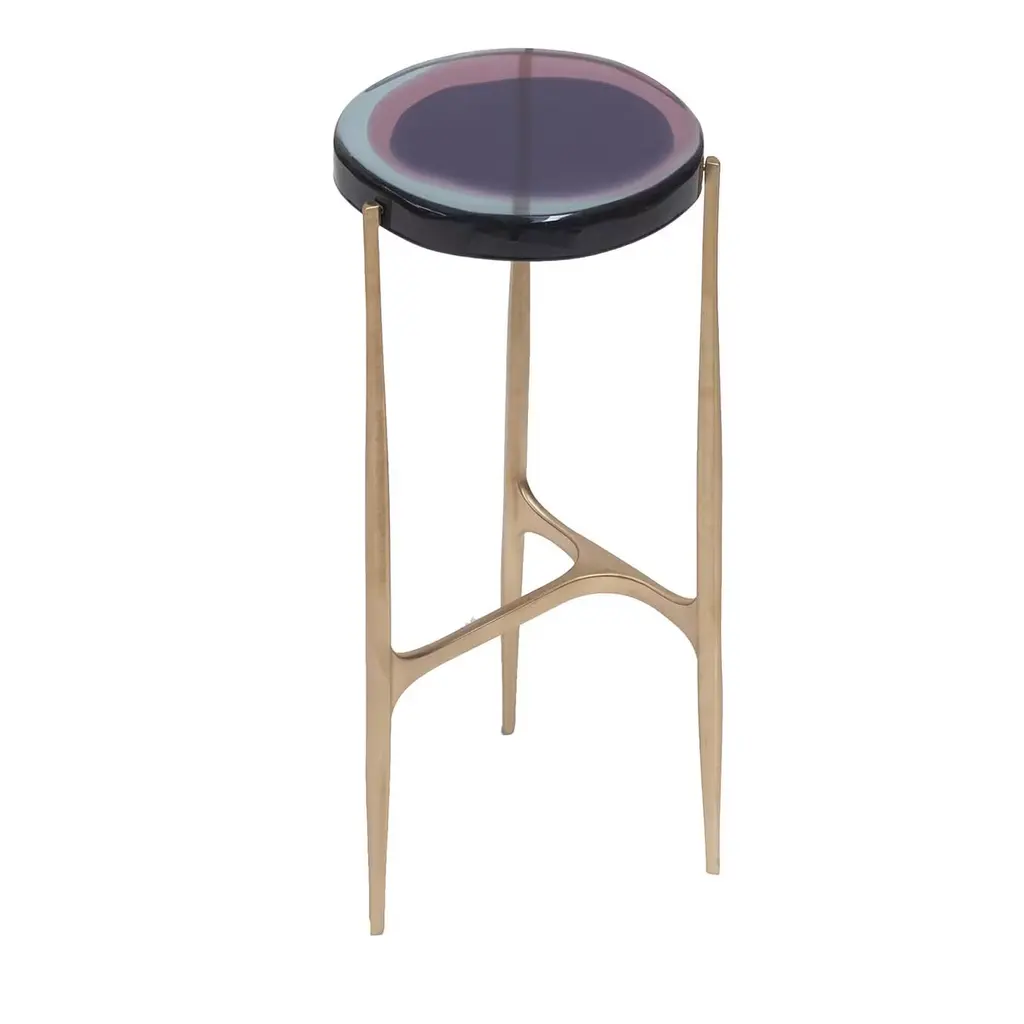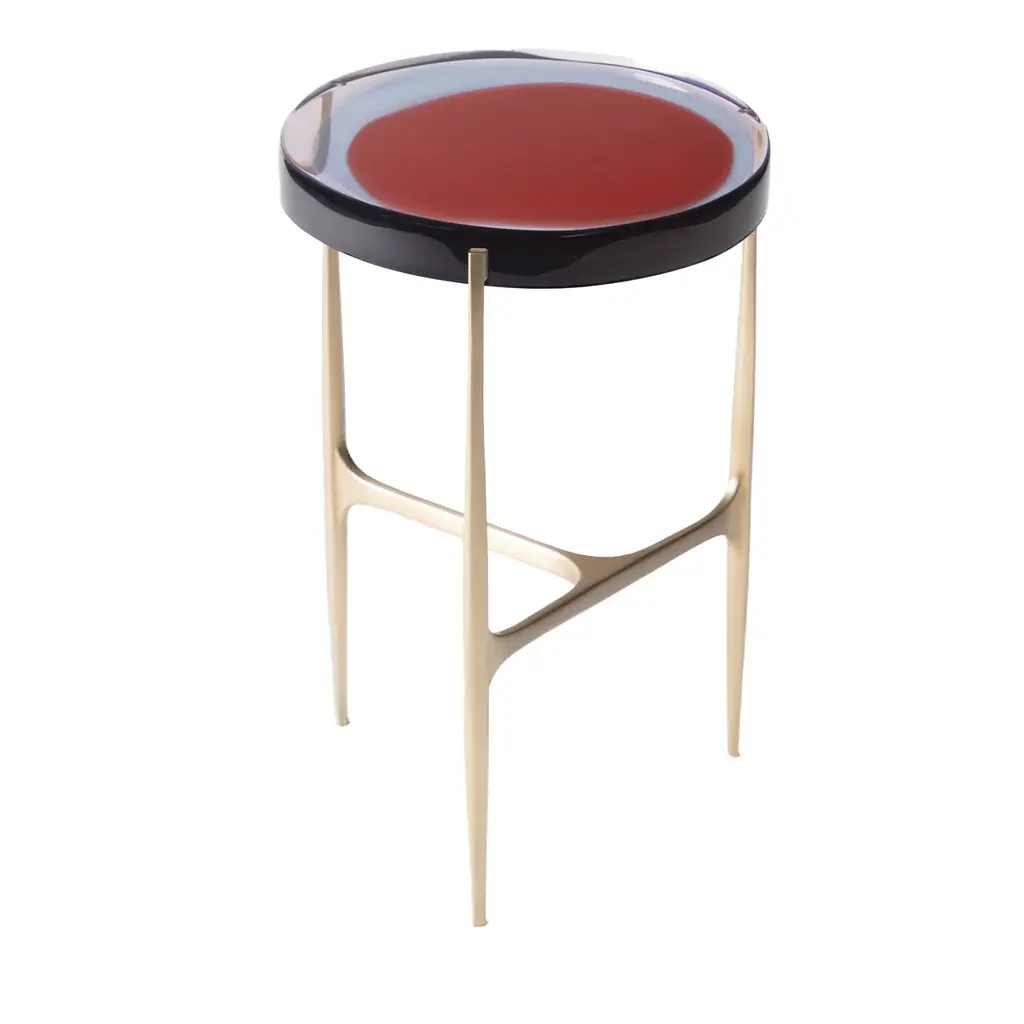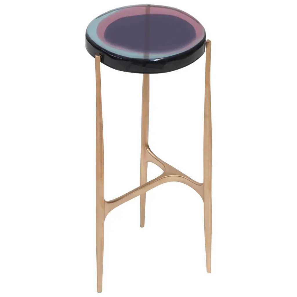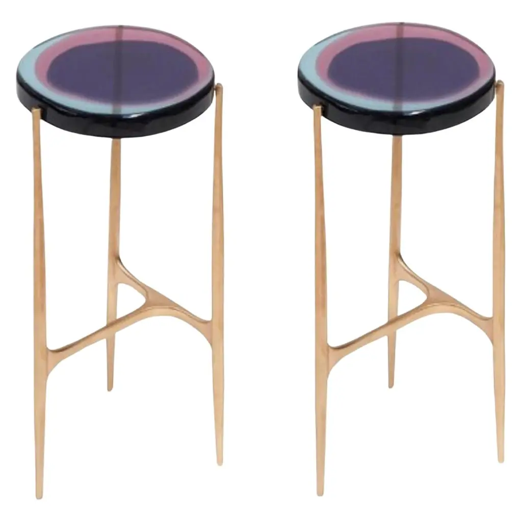 Agatha coffee table series is enlivened by an irregular circular top in transparent epoxy resin that holds a dialogue with light. The vibrant colors are poured in several layers to create a deep and fluid compound, embedded in a matte-effect bronze frame. Carefully handcrafted in our atelier, Agatha coffee tables are available in two sizes, lending themselves to multiple compositions. Available in different colors.