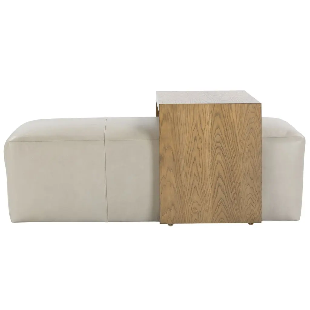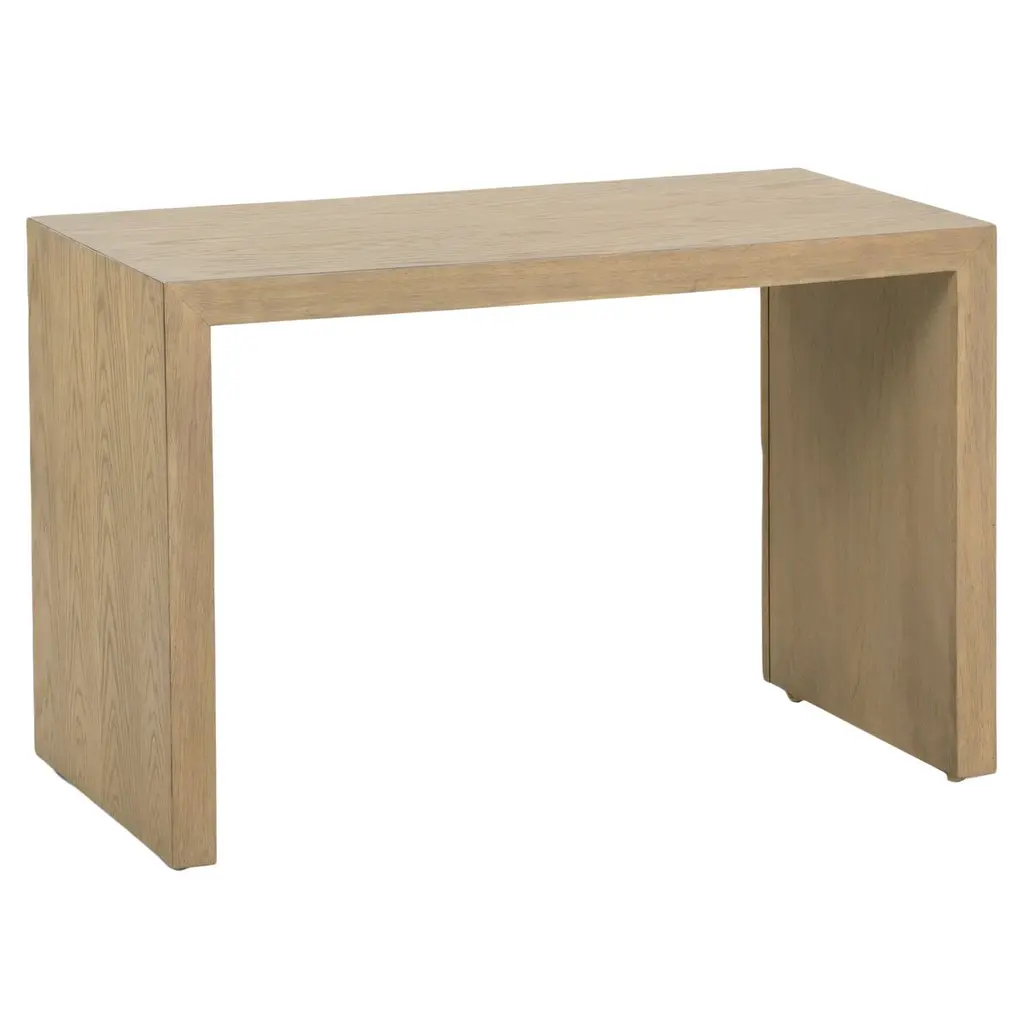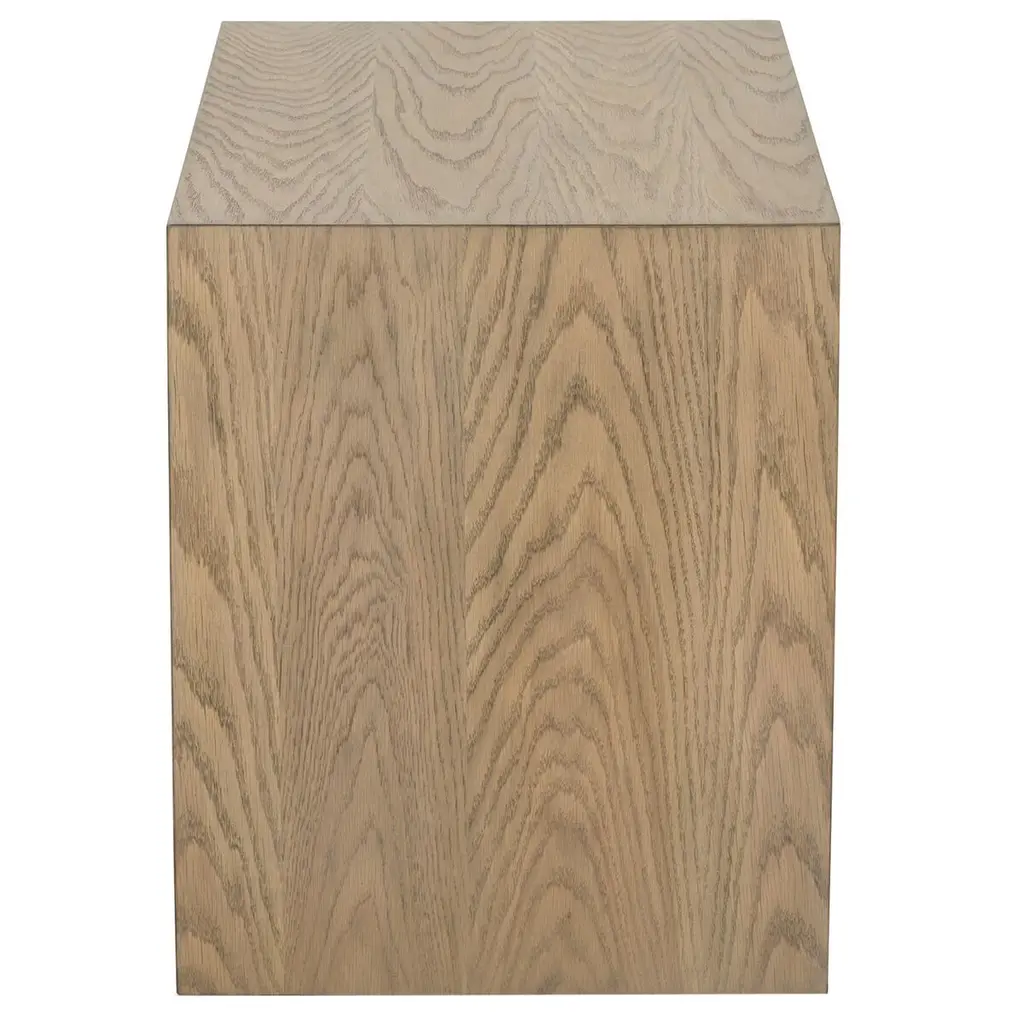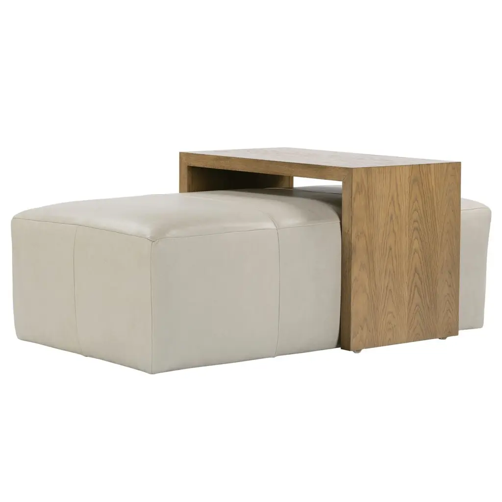 Introducing the Agatha Oak Waterfall Cocktail Table, Natural. This exquisite piece embodies the perfect blend of elegance and functionality. Its sleek waterfall design showcases the natural beauty of oak, creating a stunning focal point for any living space. The table's smooth surface and graceful lines offer a touch of sophistication, making it an ideal addition to both modern and traditional interiors. Pairs perfectly with the Augie Upholstered Ottoman.