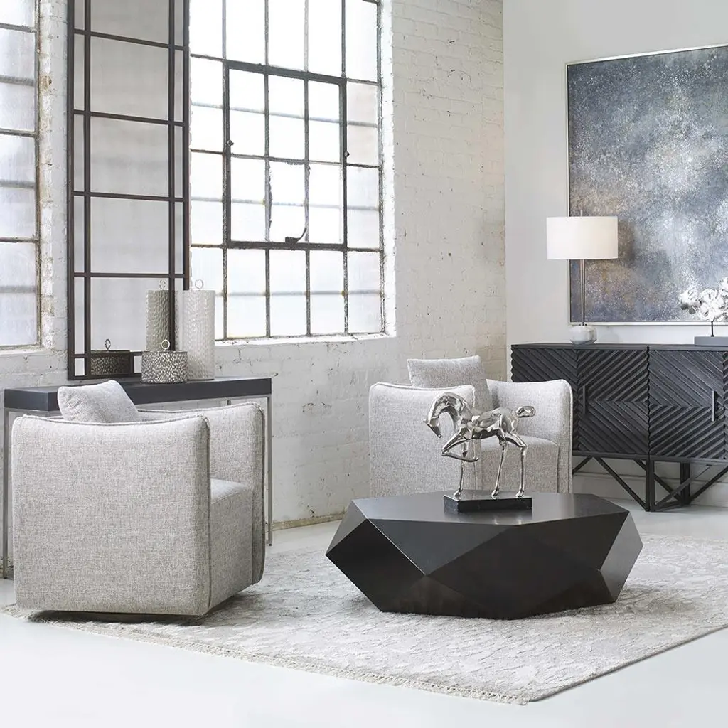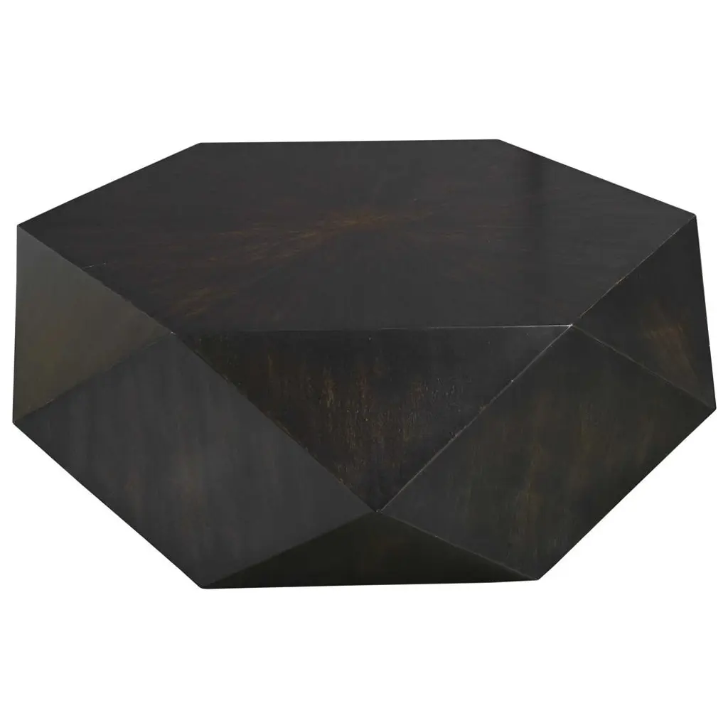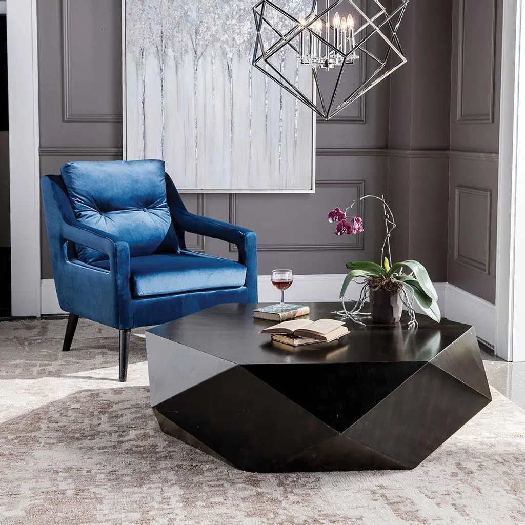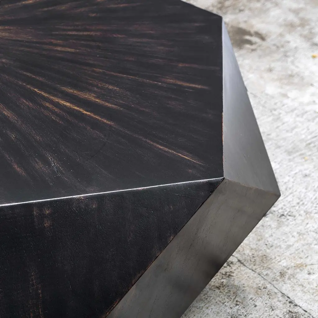 Aiden Modern Classic Geometric Black Mango Veneer Round Block Coffee Table
