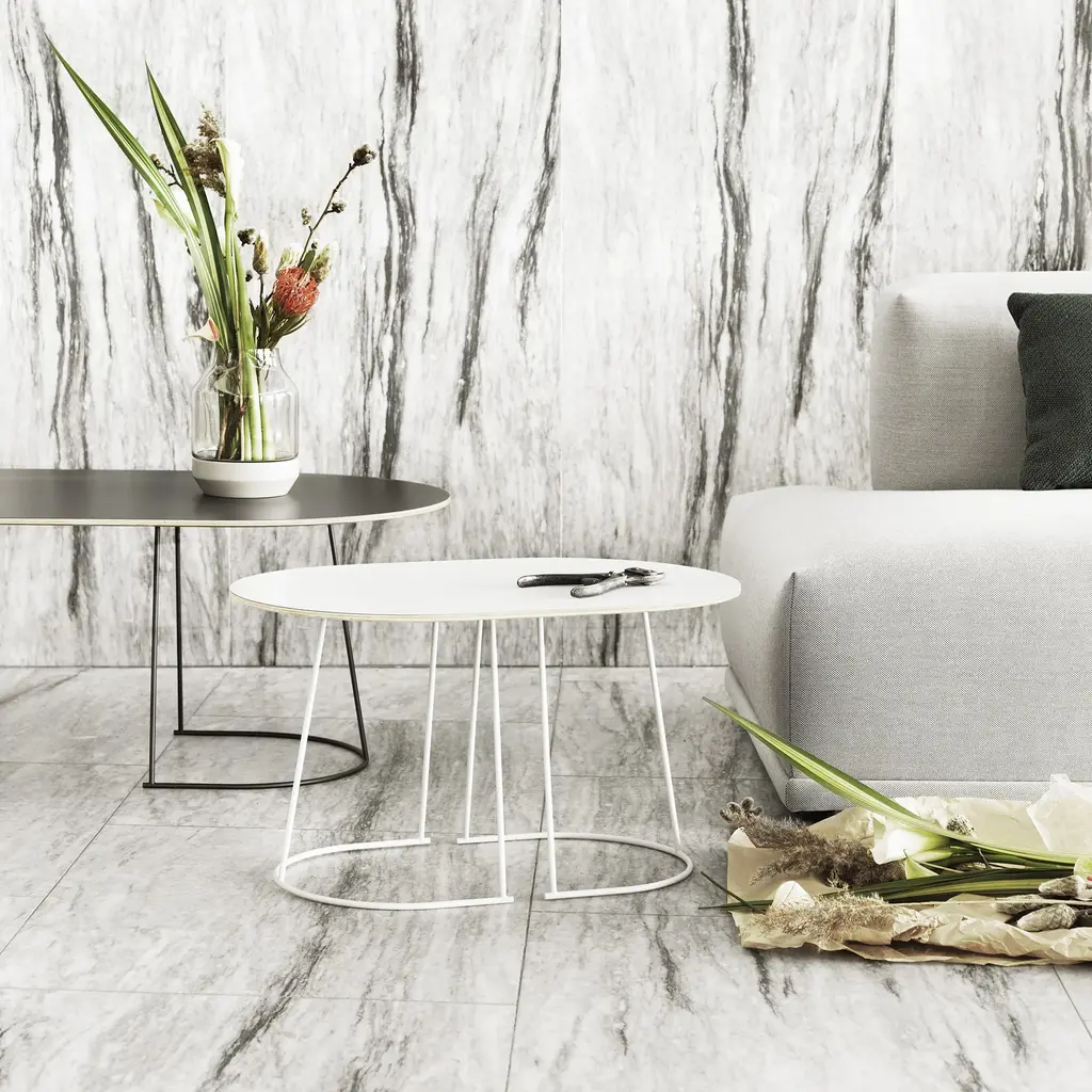 Airy appears to float on its thin-line frame. Danish designer Cecilie Manz sees it as "a coffee table that did not scream, but still was not afraid to speak." Allow us to speak to its versatility and easy maintenance. It all fits right in with the forward-thinking culture of Muuto in Denmark, which takes its very name from the Finnish word for "new perspective.