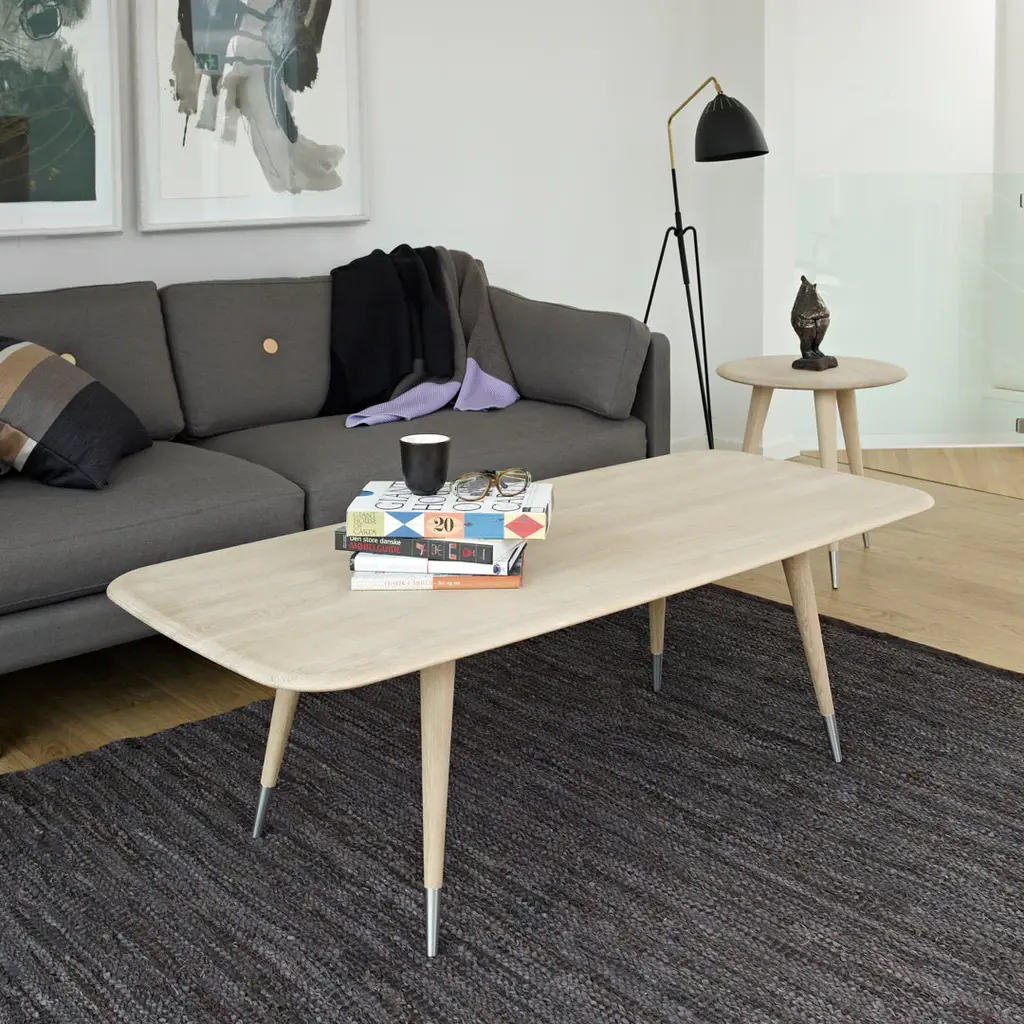 AK2530 Point Coffee Table Designer: Nissen & Gehl MDD Manufactured by: Naver Collection A series of light and stylish coffee tables in many sizes and forms which can be combined in many ways. The coffee tables are available in solid wood or in compact laminate in the colors white, anthracite, lavender blue, and burnt orange. The pointy turned wooden legs are available in 3 heights with or without steel base. Please note: the laminate version is slightly smaller with a width of 24.6 inches.