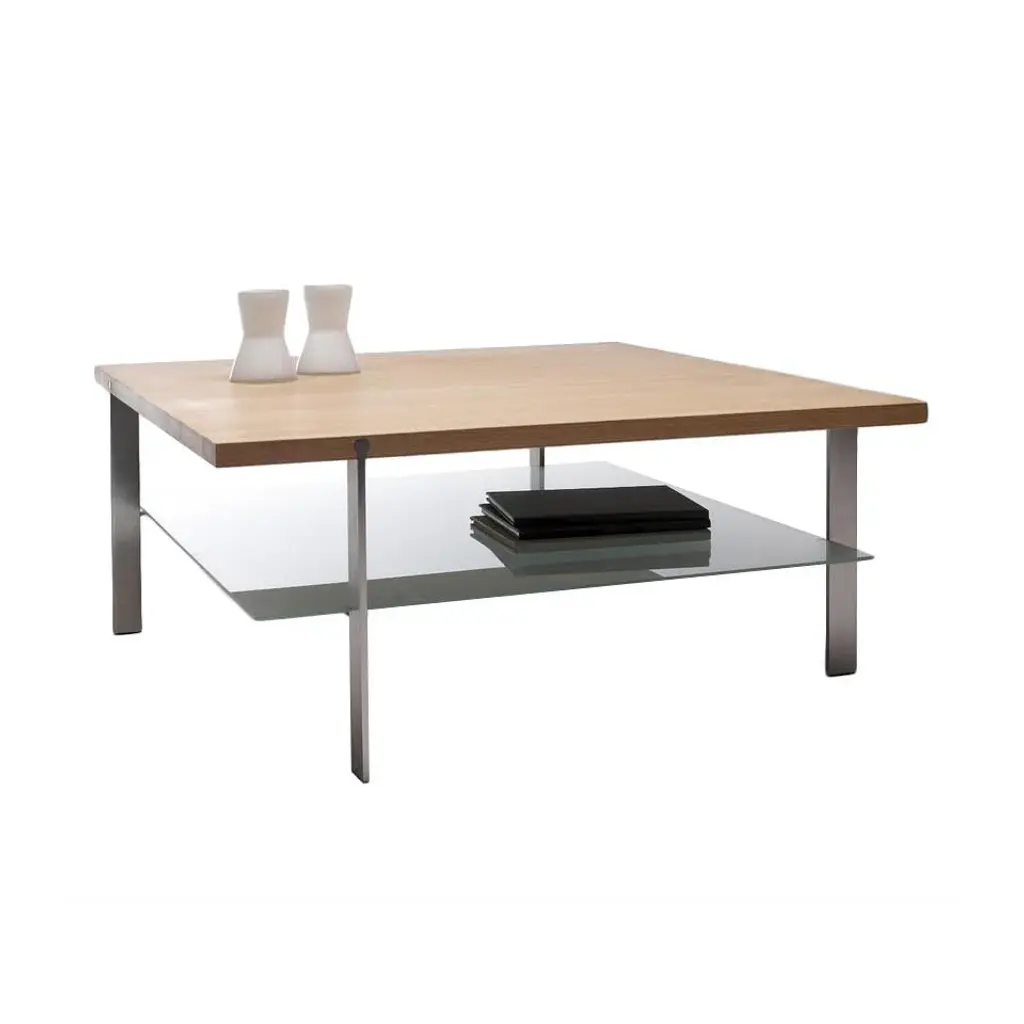 AK920-40 Coffee Table Designer: Nissen & Gehl MDD Manufactured by: Naver Collection Dimensions (in): see Options below Beautiful and simple coffee tables designed by the architects Nissen & Gehl. Solid table top with laid in stainless steel legs. Available with or without glass shelf.