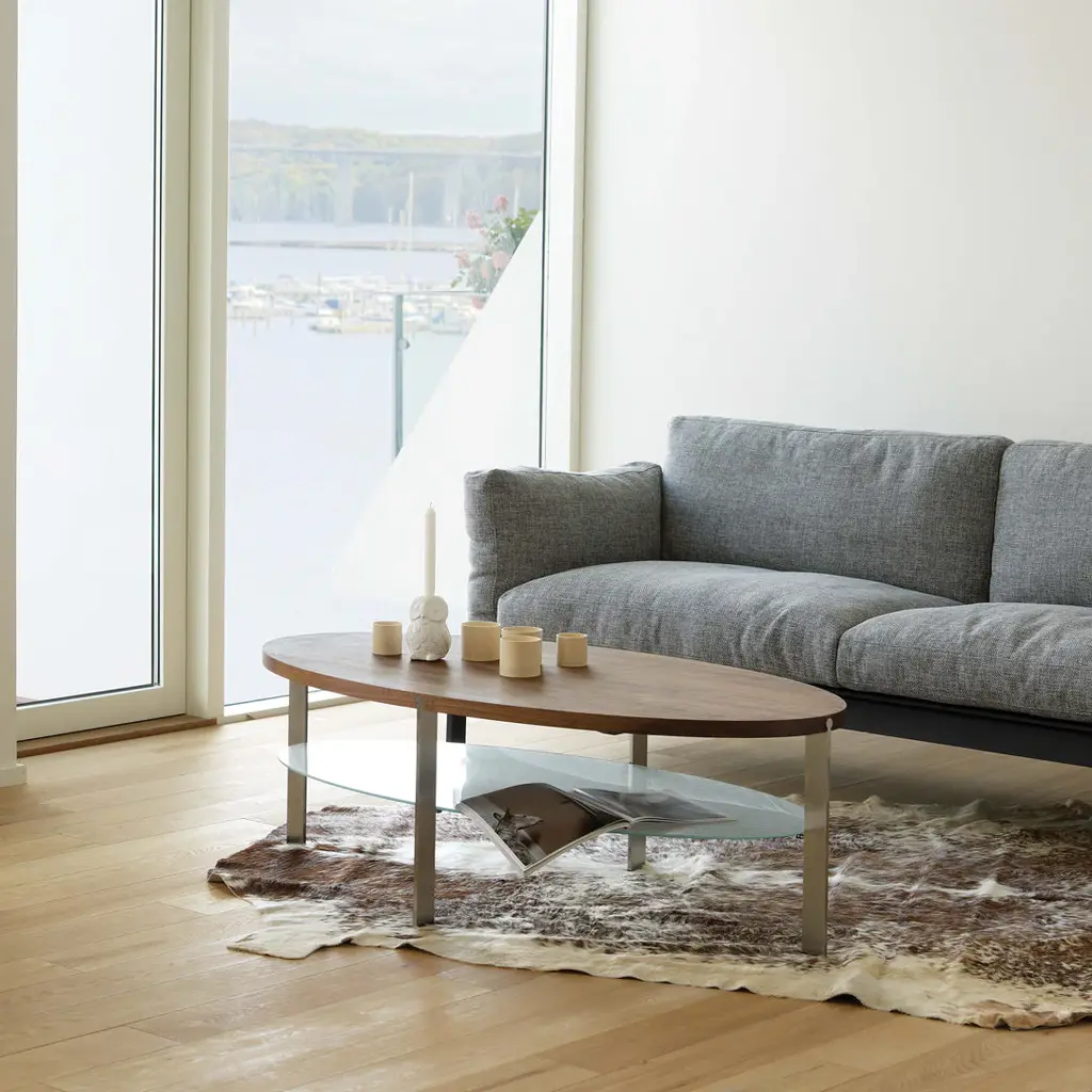 AK960-80 Coffee Table Designer: Nissen & Gehl MDD Manufactured by: Naver Collection Dimensions (in): see Options below Beautiful and simple coffee tables designed by the architects Nissen & Gehl. Solid table top with laid in stainless steel legs. Available with or without glass shelf.
