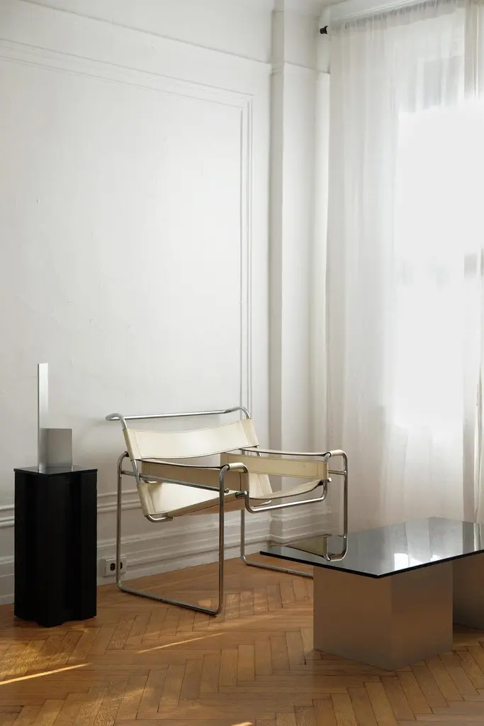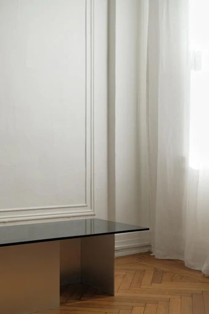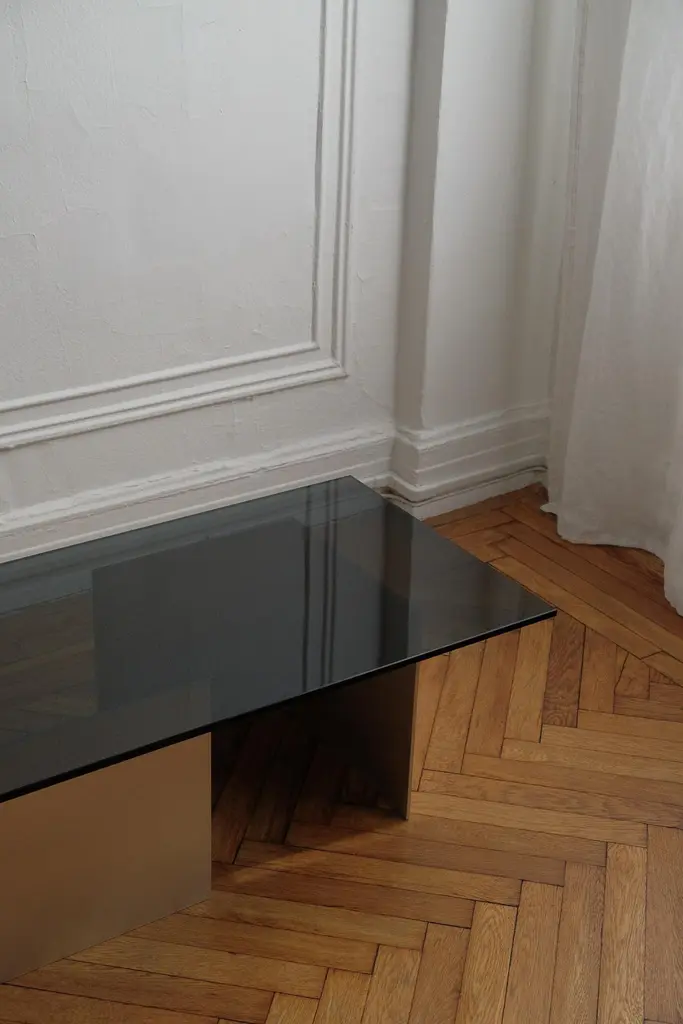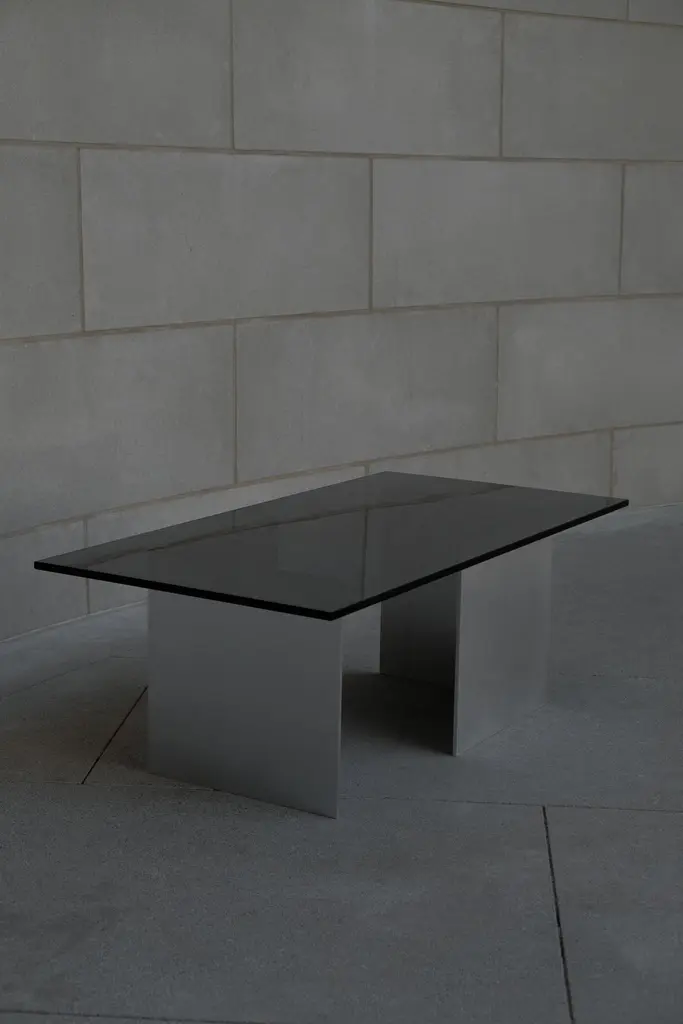 AL-03 Coffee Table by Orlando PippigDimensions: W 102 x D 51 x H 36 cm (Dimensions may vary slightly)Materials: Aluminum, Smoked GlassThe forms presented in AL-03 were heavily influenced by the glass artworks Larry Bell created in the 60’s, as part of the light and space art movement that emerged from Southern California. I had the pleasure of viewing these works in person at Dia: Beacon and was completely entranced by their translucent illusions. Continuing the same geometric direction as the preceding AL designs, 2 square planes of aluminum make both L’s that the smoked glass top rests on. Offsetting the L’s visually aligns the two opposing squares, creating negative space to imply the illusion of a singular rectangle. Following Bell’s works, negative space is an equally important element in this design as the positive is. AboutOrlando Pippig is a self taught furniture / object designer currently living and working in New York City. For the last 8 years, he’s been designing and fabricating high end furniture, centered around solid wood and metal. In 2020 he opened his own studio. His personal designs are rooted in visual simplicity that’s driven by form, with a strong focus on highlighting specific materials. Drawing inspiration from many sources; nature, sculpture, industrial environments, architecture, he finds ways to mesh these separate sources into singular expressions. His work is influenced by systematic iteration, working individual concepts into multiple designs to create a linear progression. The design process favors an engineering approach, the goal of fully understanding connection methods and how to best implement. These thinking patterns result in furniture that holds superior strength and a genuine form.