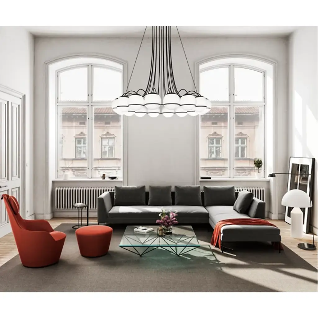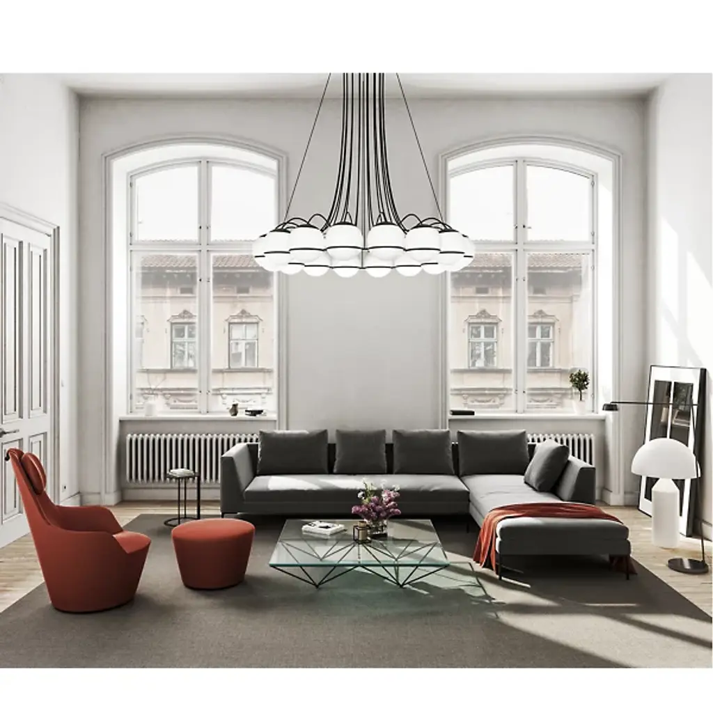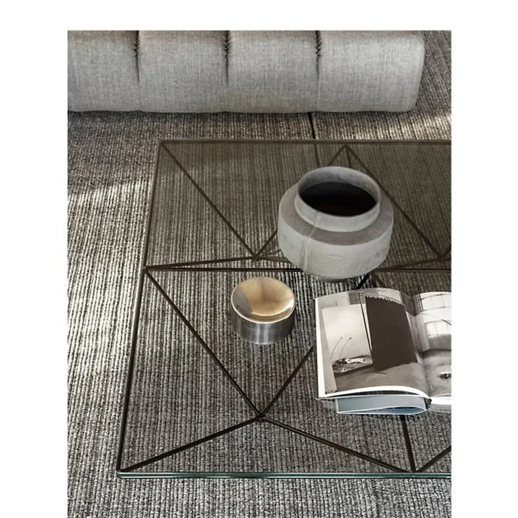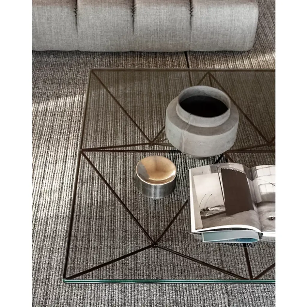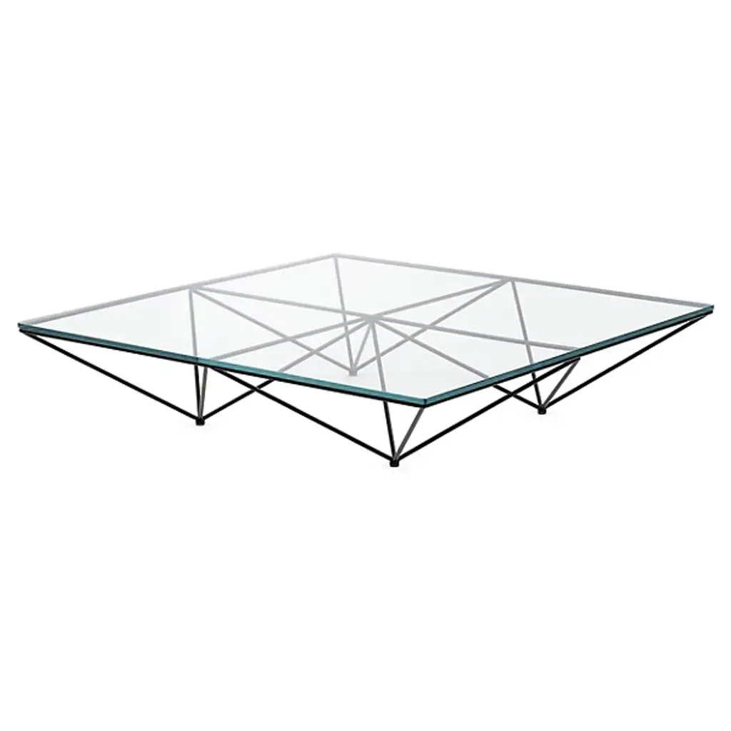 The Alanda Square Coffee Table from B&B Italia sets a sophisticated tone with a low-profile design defined by graphic, sculptural motifs. This Paolo Piva piece illustrates his methodical approach based on "conscious" design. Piva's architectural background is evident in the precise lines of the upturned pyramidical framework. The clear glass tabletop is extra light to allow the focus on the underlying structure.