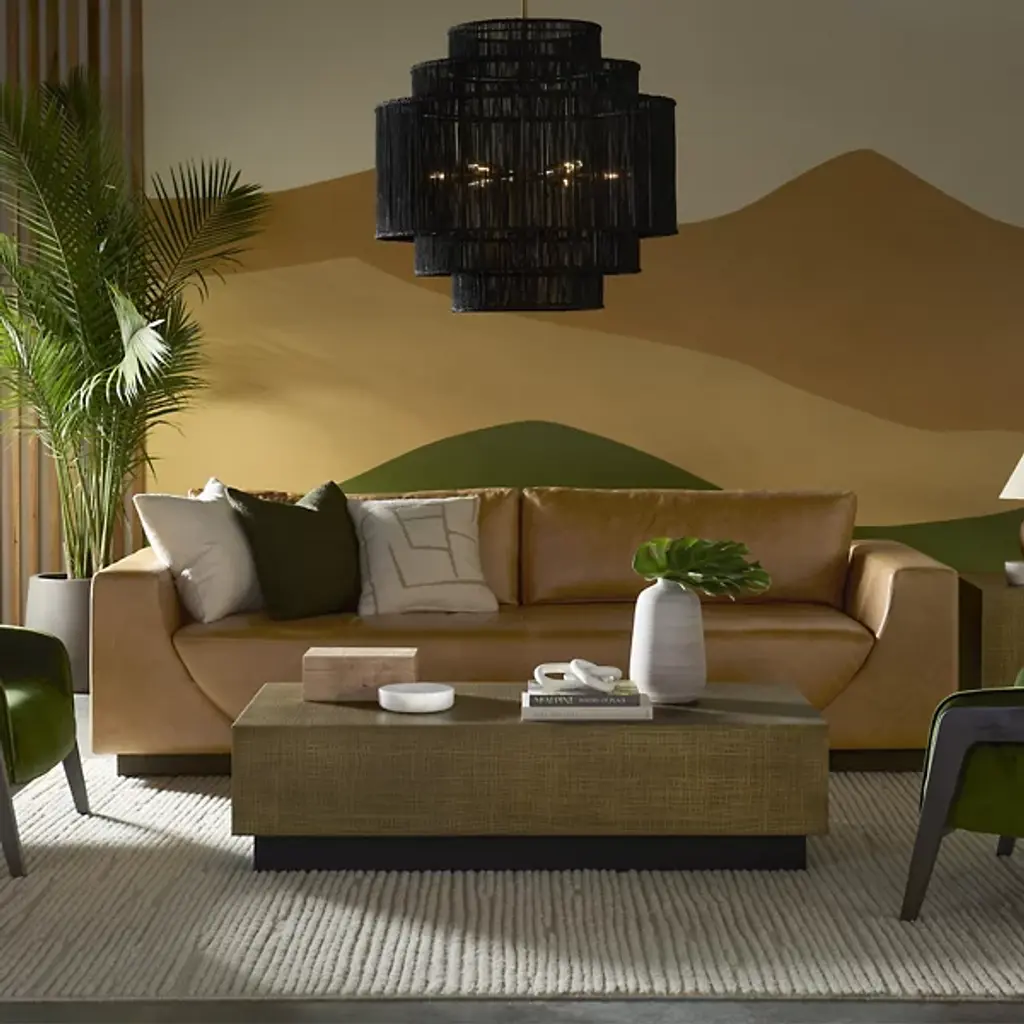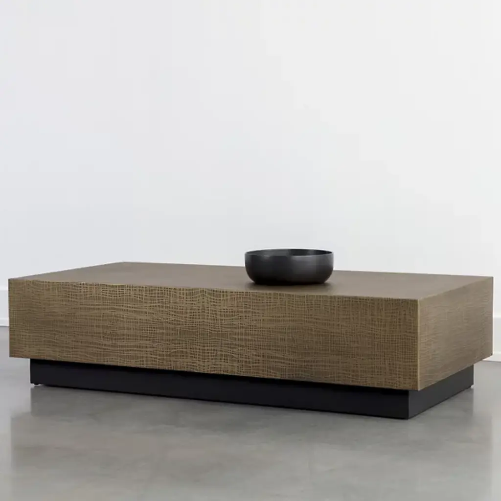 Present the artistry of handcrafted design. The Albans Coffee Table from Sunpan is an expressive transitional piece made in India. It features a hand-etched iron surface with a burnished brass finish, adding a vintage elegance to any space. The stepped construction is simple yet intriguing, surfaced with intricate detailing and a powder-coated iron base that brings a refined yet rustic appeal. Each piece is crafted by skilled artisans, embracing natural imperfections that make every dresser a unique piece of art.