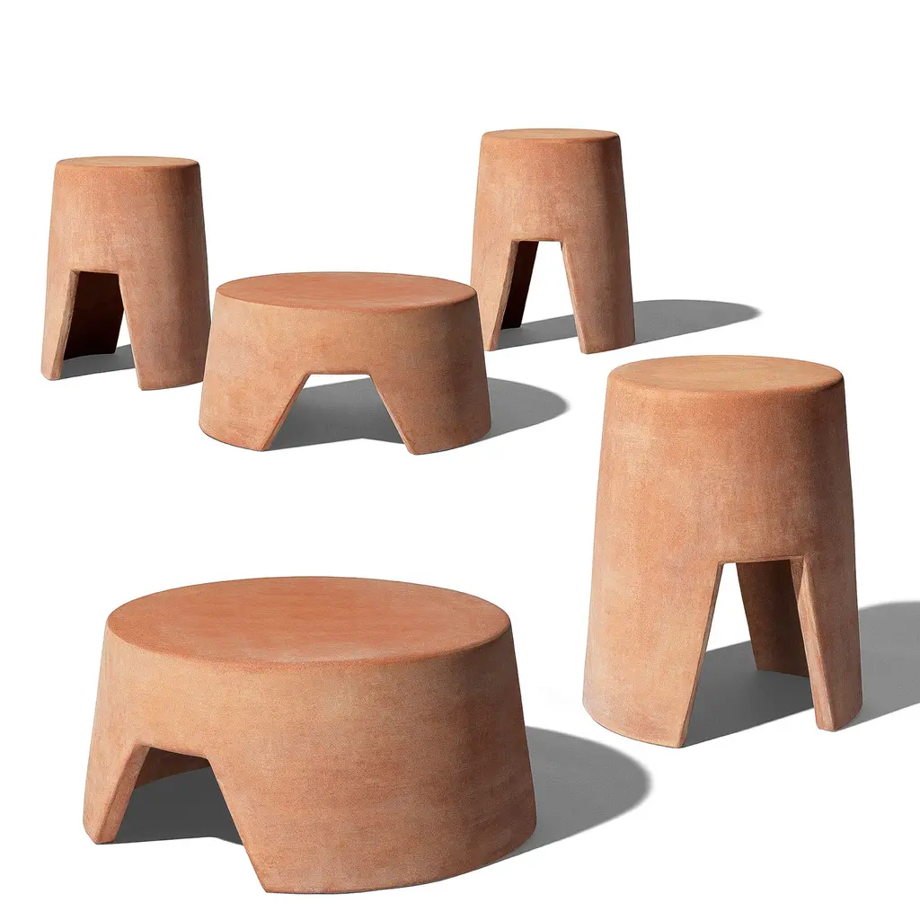 These small tables, made entirely of terracotta, are designed to enhance outdoor spaces with their natural clay tones. Their warm colors harmonize with garden plants and terraces, creating a seamless connection to nature. Built to resist the elements, these tables are durable in all weather conditions, including freezing temperatures, ensuring long-lasting performance. The conical, self-supporting shape of Albi and Suni provides stability, while the flared design beneath the tabletop allows for an easy grip when relocating them. Their simple, archetypal design emphasizes functionality and sturdiness, making them practical yet stylish additions to any outdoor area. In keeping with InternoItaliano’s philosophy, the names of the tables are inspired by lesser-known Italian towns, highlighting an authentic yet understated part of the country’s identity. Suni, for instance, is a small town in Sardinia’s Oristano province, reflecting the brand’s tribute to Italy’s cultural heritage. With their earthy material, practical design, and timeless aesthetic, Albi and Suni bring both elegance and utility to outdoor spaces, blending perfectly with natural surroundings.