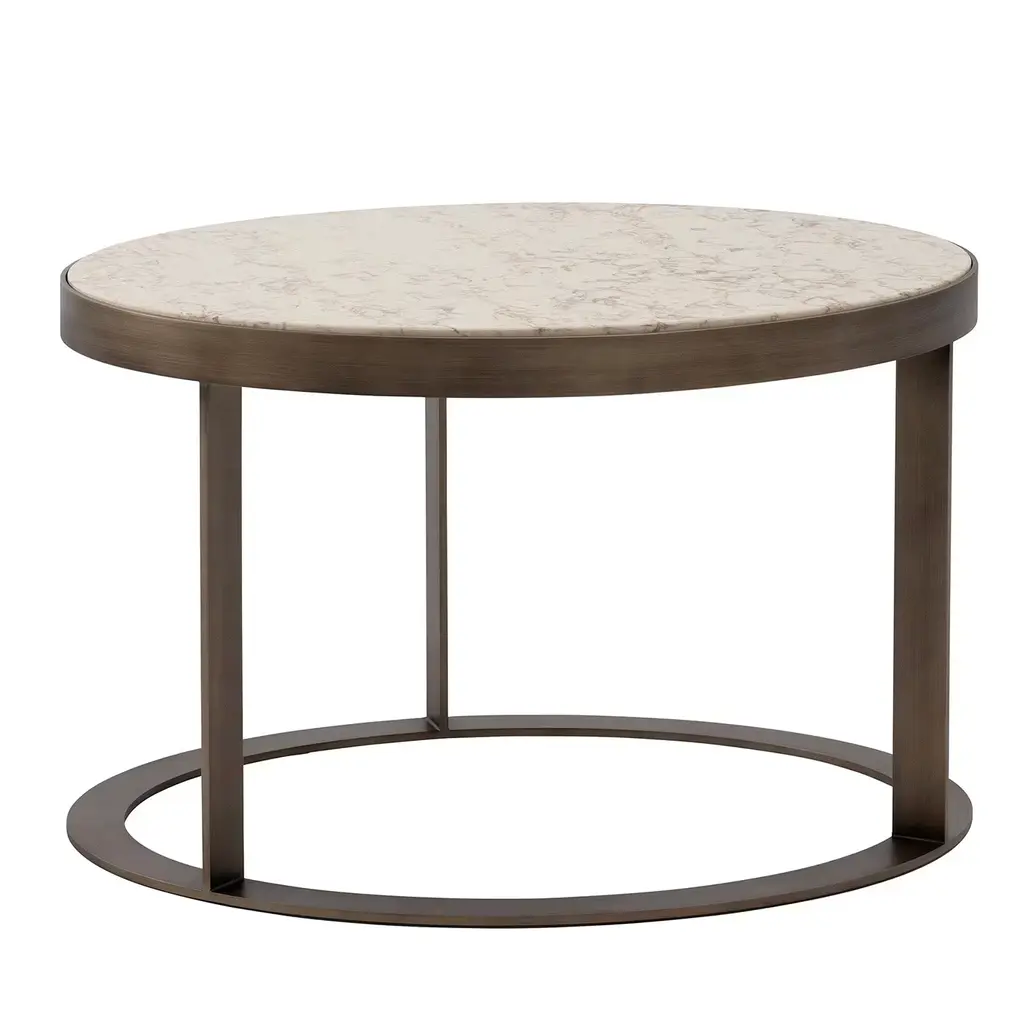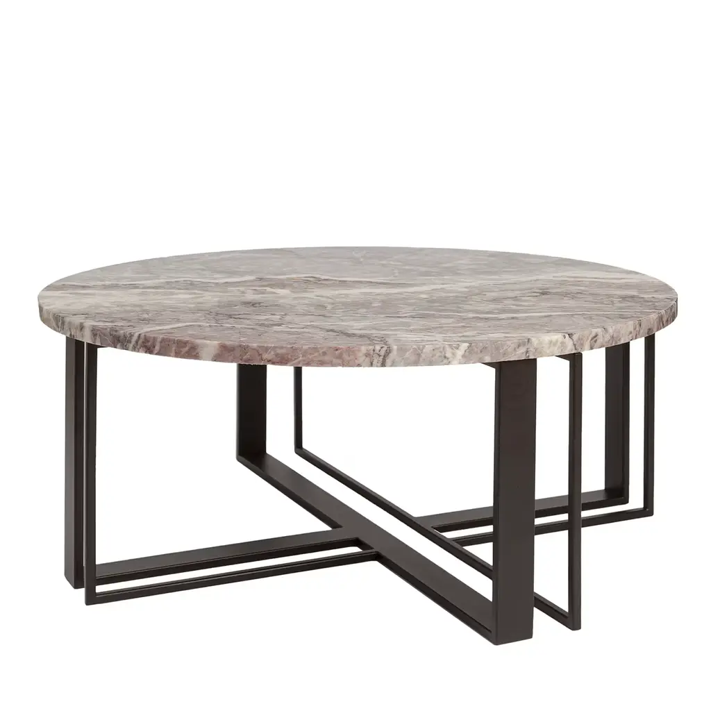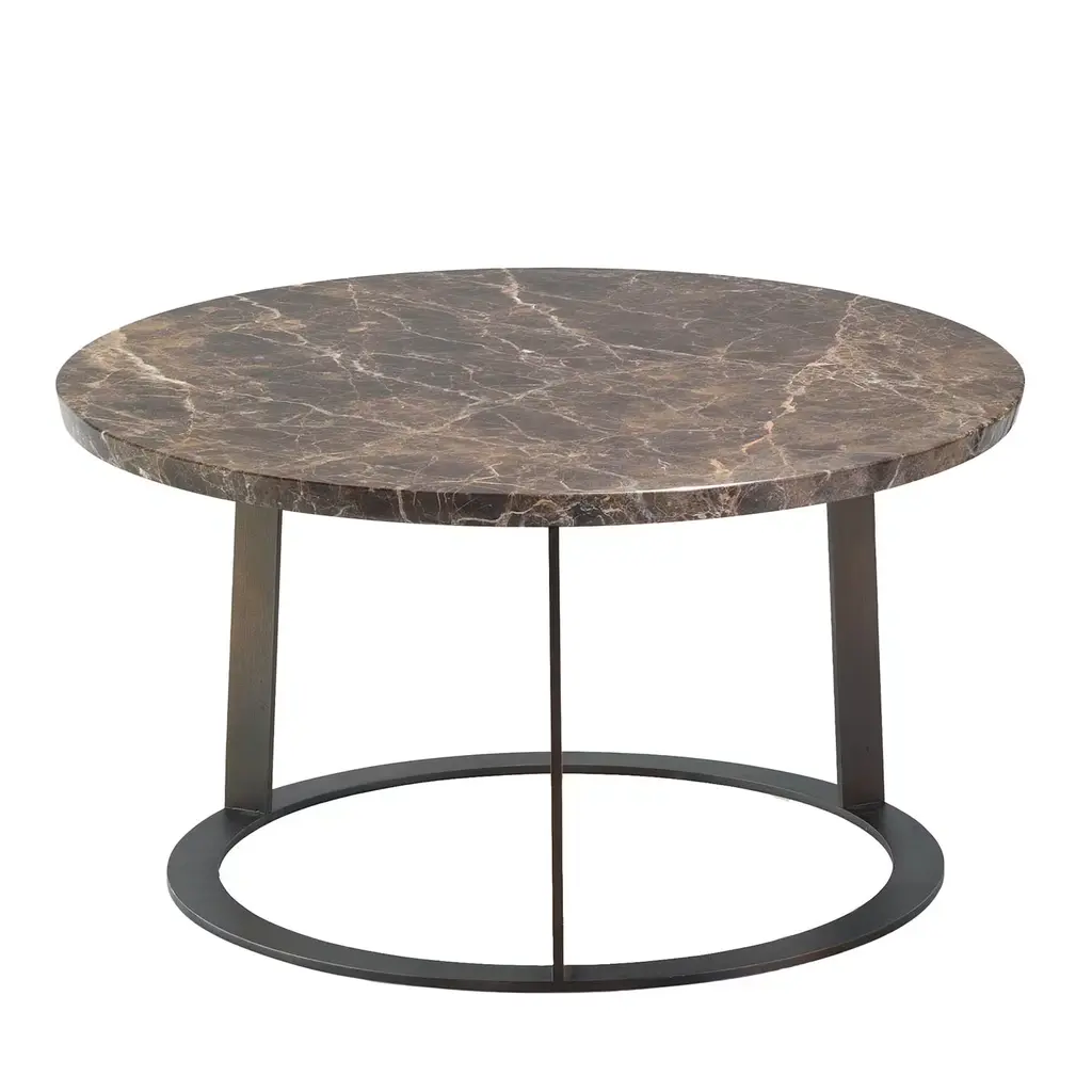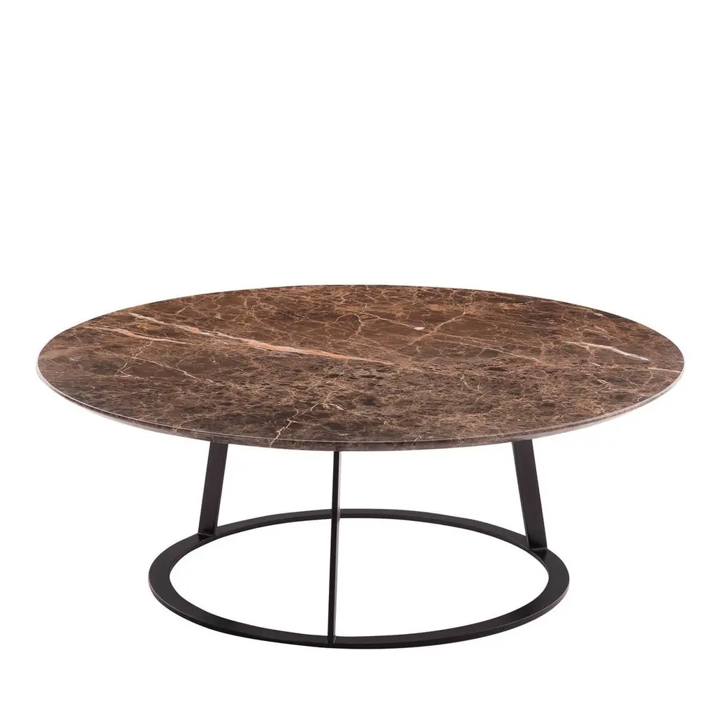 This coffee table was designed by Salvatore Indriolo following the success of his first Albino table introduced in 2010. A refined piece of functional decor, it features a round top made of Emperador dark marble resting on a robust black powder-coated iron tripod mounted on a circular base. This versatile and elegant piece is also available in a fully lacquered MDF and veneered MDF versions, in different sizes and finishes.