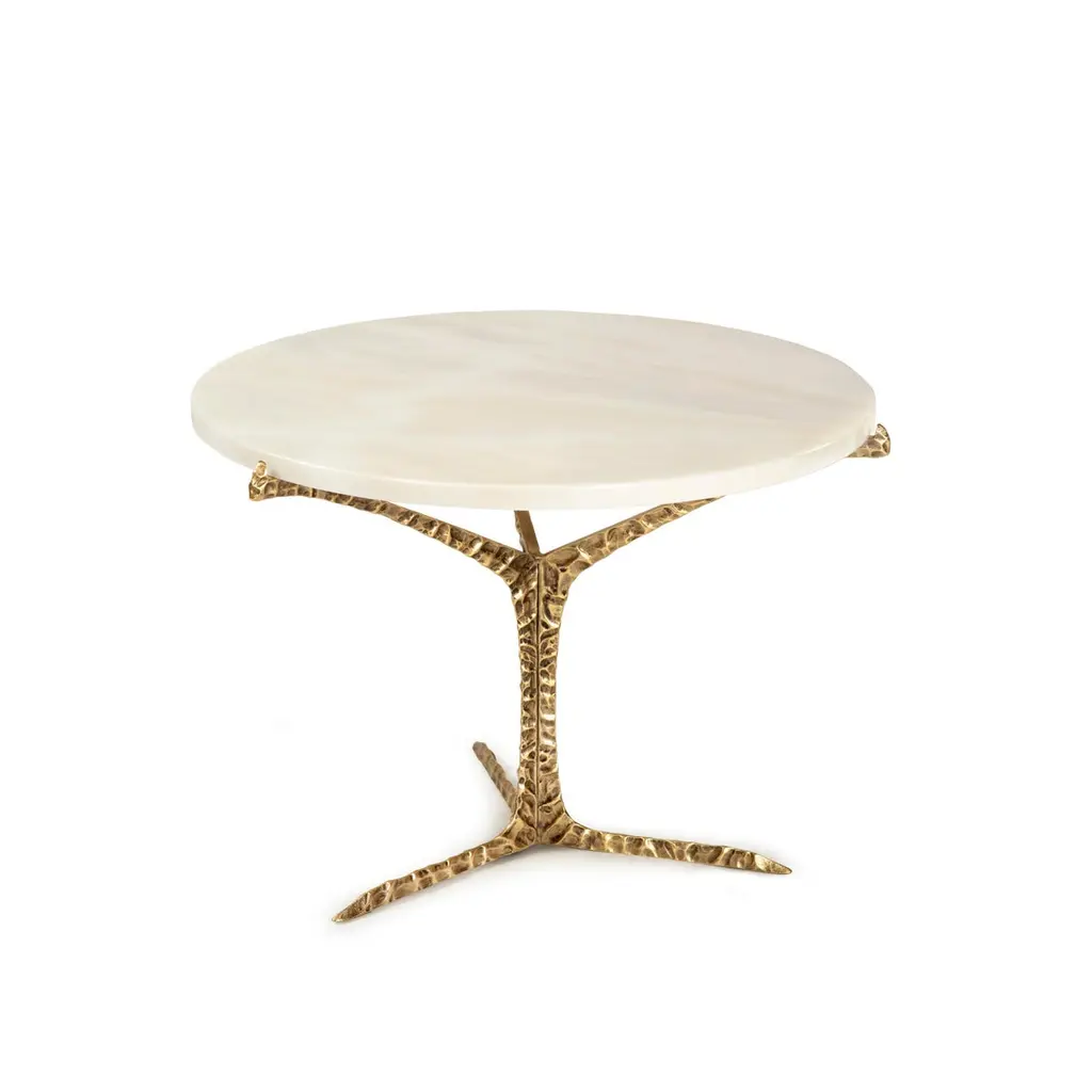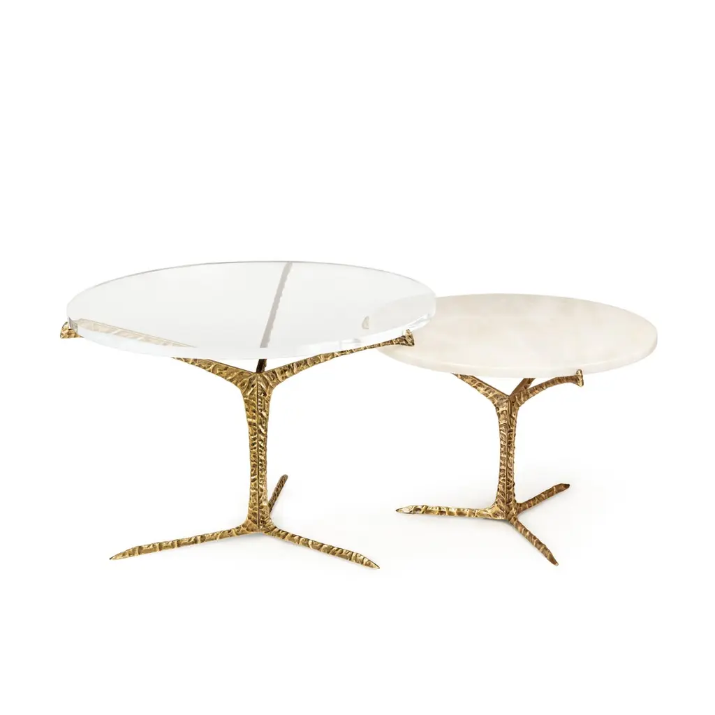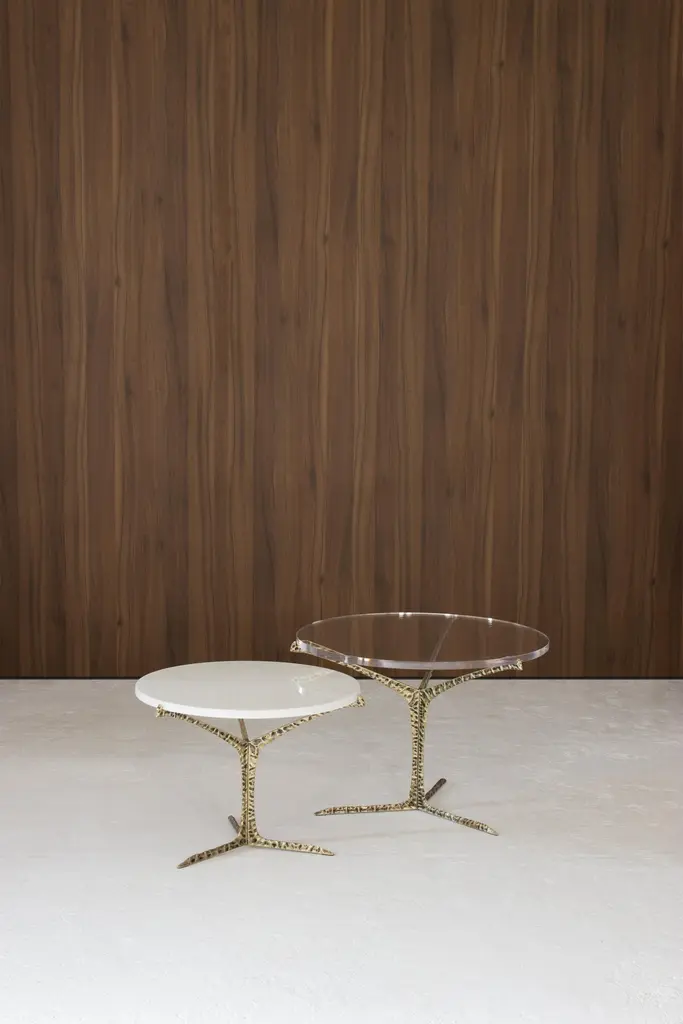 Alentejo coffee tables are a glimpse over the South of Portugal where thousands of cork oaks trees raise their canopies to the sky.Resembling the typical trees that spread across the horizon with their canopies gracefully balanced above the ground, this nature inspired design is based in the beautiful natural forms. The structure in cast brass with patinated effect results of a careful sculpted work that highlights the natural details.Product detailsTop: Estremoz marbleBase: feet in cast brass with patinated effect finished in matte varnish.Product optionsTop: other marbles, wood veneers, acrylic or lacquered in any Ral Classic color finished in matte, half gloss or high gloss varnish.Base: feet in cast brass covered by copper or nickel bath with patinated effect finished in matte, half or high gloss varnish.Weight 17Kg 37.5 lbsMade to order. Custom sizes and other finishes are available under request.Designed by Joana Santos Barbosa for InsidherLand, 2019. Handmade in Portugal.