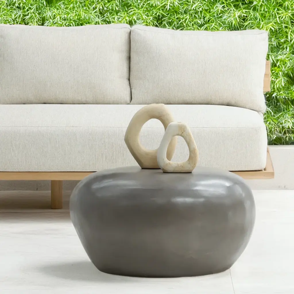 This modern outdoor coffee table adds elegance to your patio or backyard without disrupting the organic landscape. Its specialty shape is inspired by natural stone formations, creating an eye-catching centerpiece for your outdoor seating area. Made from fiber-reinforced concrete, this table is weather-resistant, ensuring it can handle the elements with grace. To keep it looking its best during inclement weather, we recommend using a proper outdoor cover. Enjoy leisurely conversations and alfresco refreshments around this stylish table. Pair it with your favorite outdoor seating (sold separately).