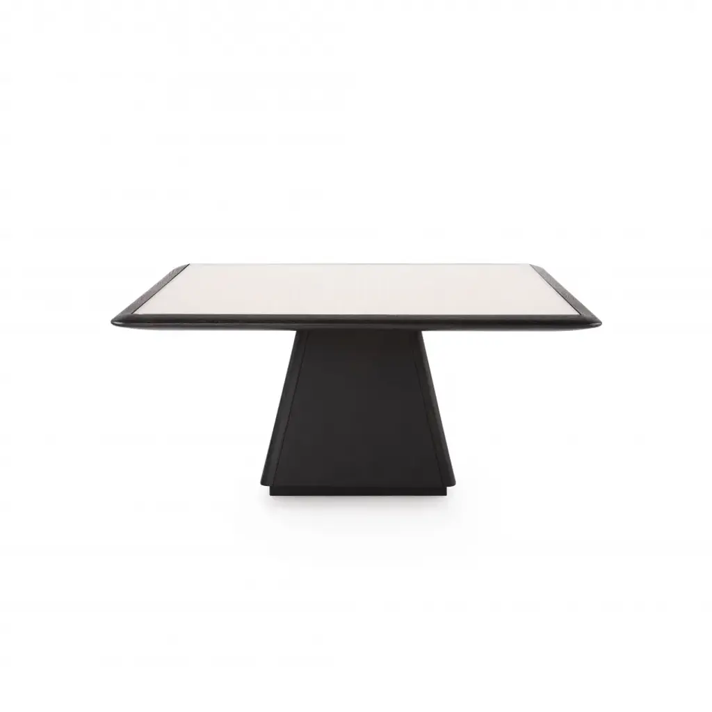 With its simplicity of line and its emphasis on materials, the Alma collection is a blend of Scandinavian and Japanese aesthetics. It comes in both bleached cerused oak and espresso oak, and features a woven-cane and glass top that imparts an airy, contemporary, and minimalist appeal.