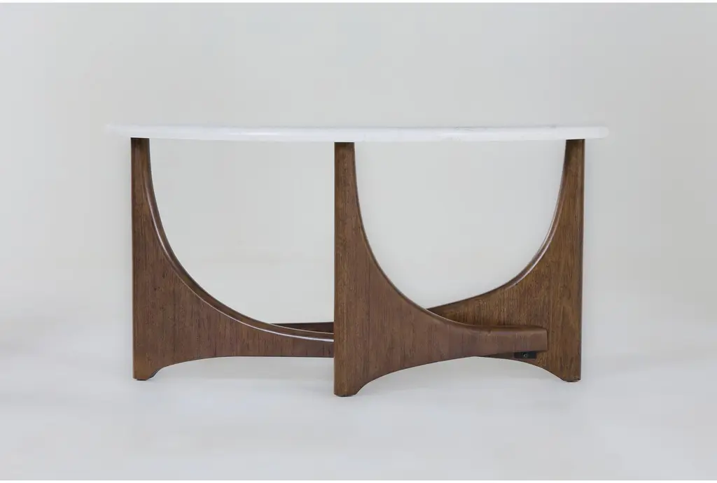 Alphie Brown 38" Wide Triangle Honed Marble Top & Wood Base Coffee Table