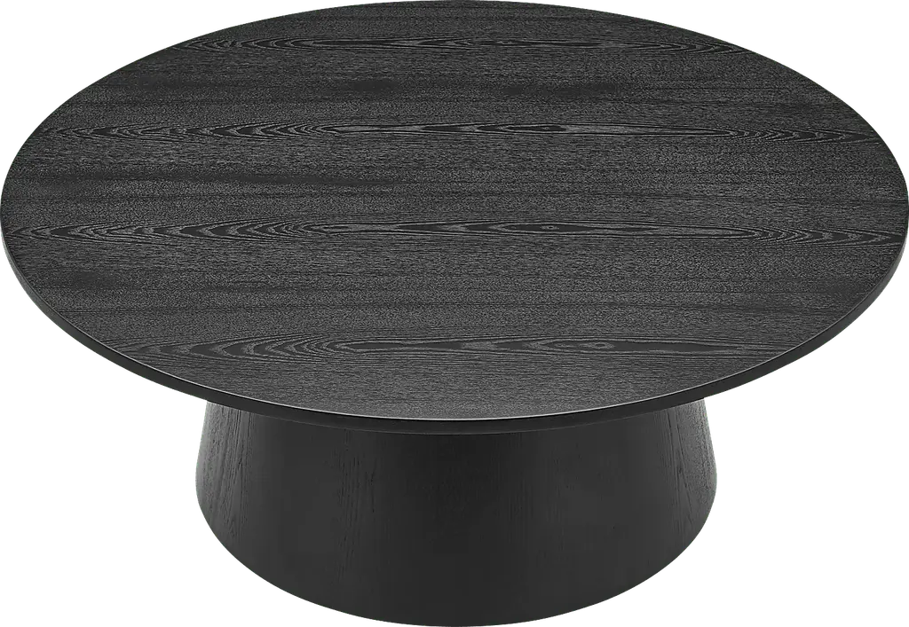 The Alpitey black cocktail table offers a clean and inviting design, boasts a black stained ash veneered finish and a simple silhouette. The perfect addition to any space. Customer assembly is required.