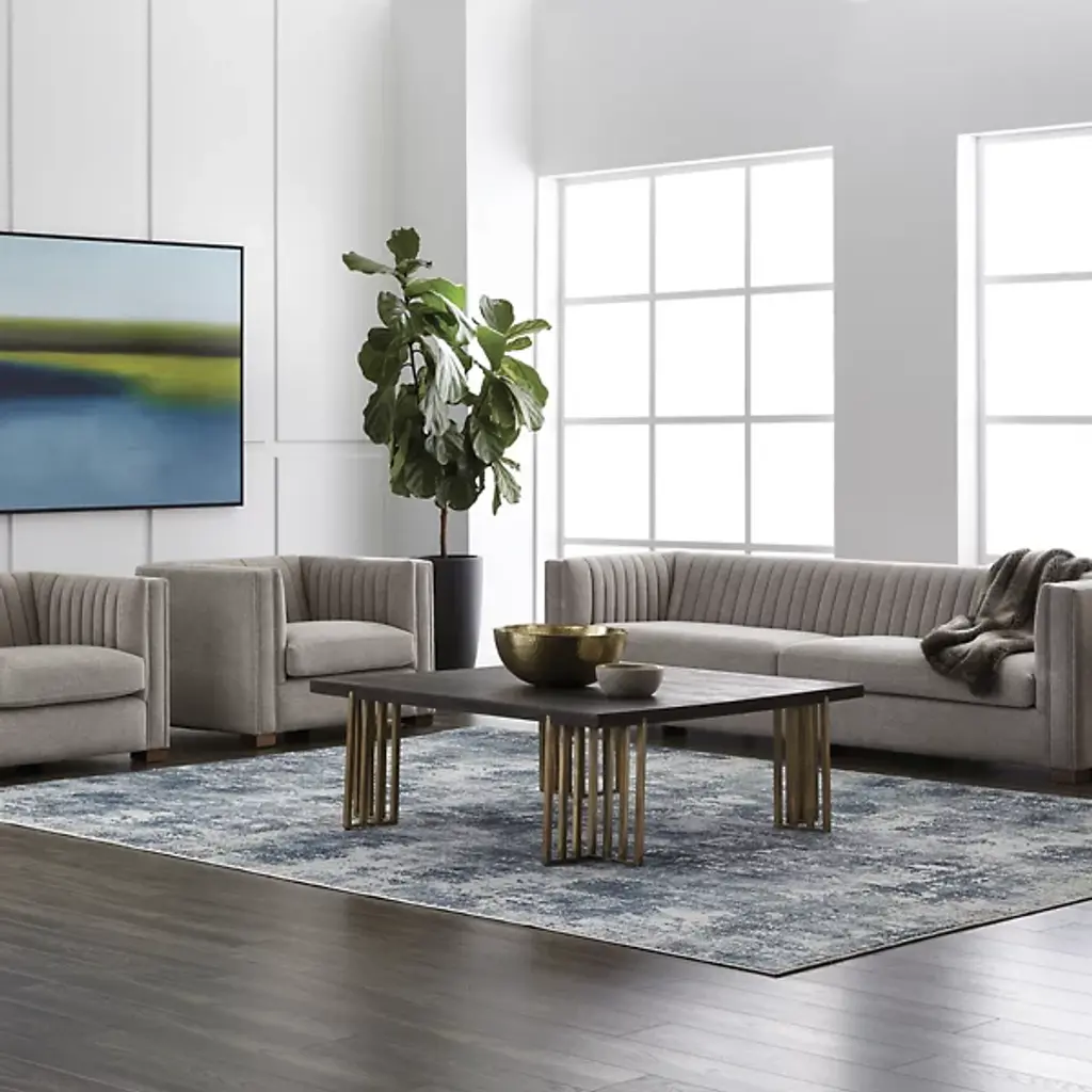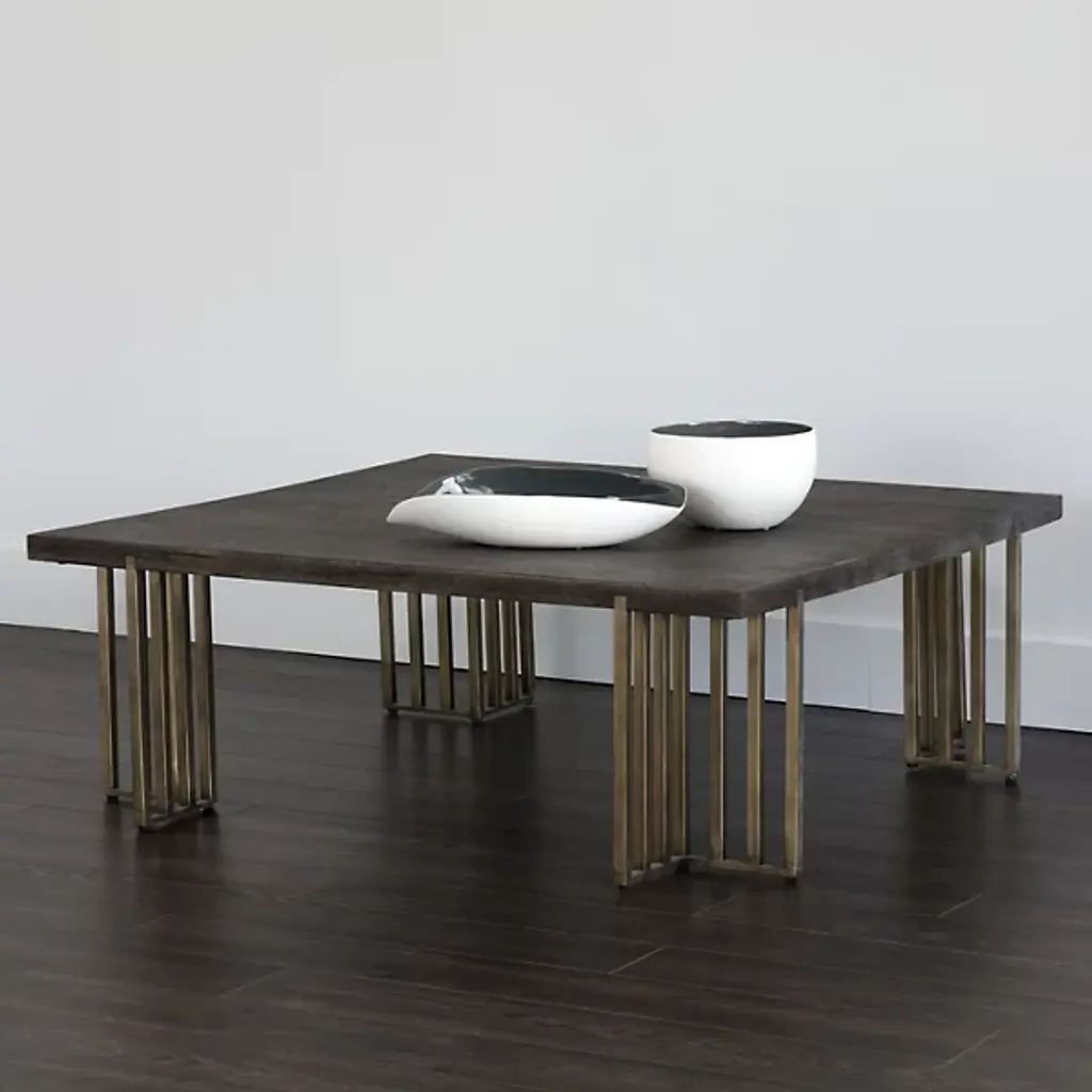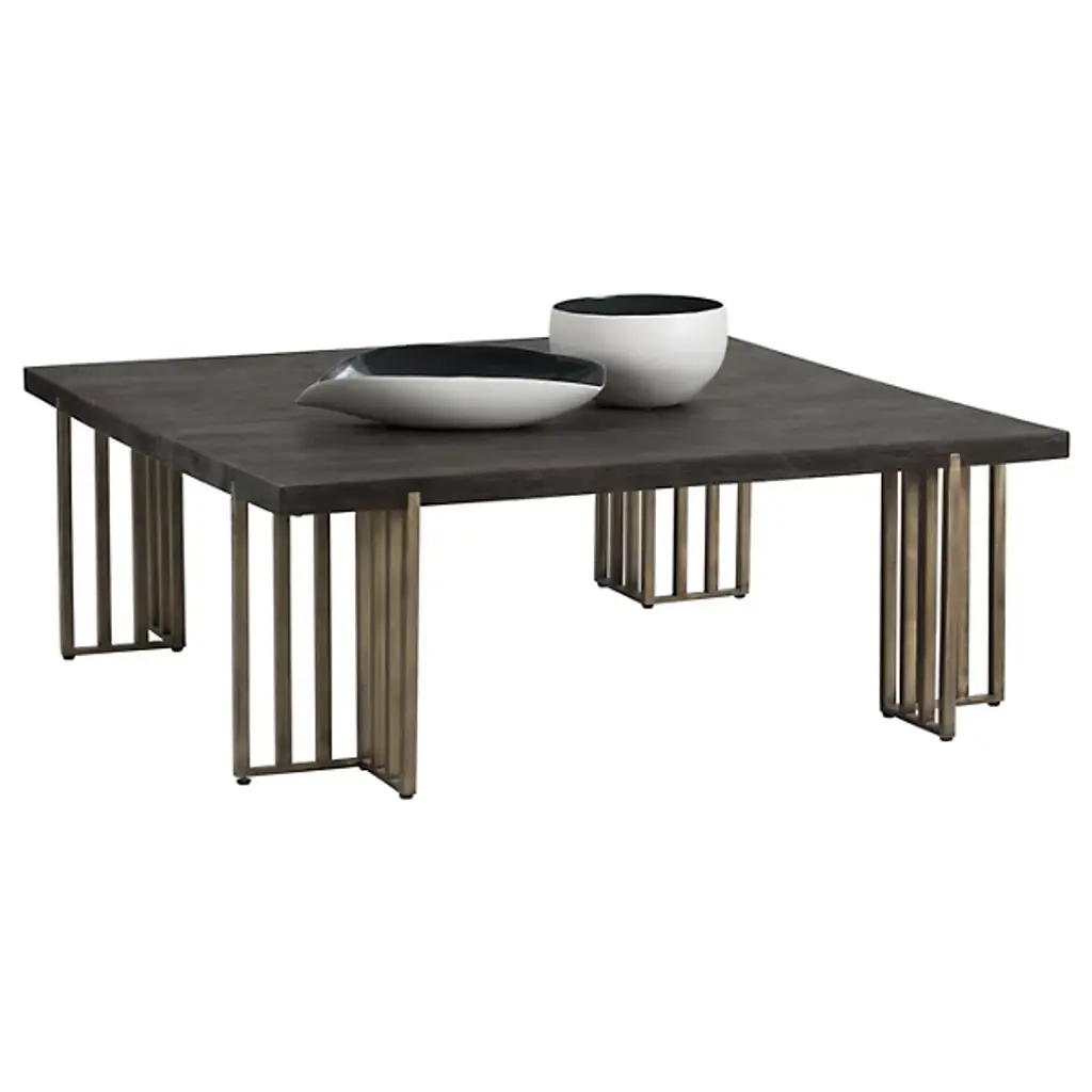 Elevate your living or lounge space with the warmth and style of the Alto Coffee Table from Sunpan. The distressed oak wood veneer top offers a rich, textured surface that exudes rustic charm, while the architectural antique brass iron legs provide a striking contrast and contemporary appeal. The table's finish features intentional cracks and deep lines, adding to its authentic distressed look. Designed to suit residential and contract environments, this versatile piece effortlessly blends character with durability, making it a stylish and practical addition to any setting.