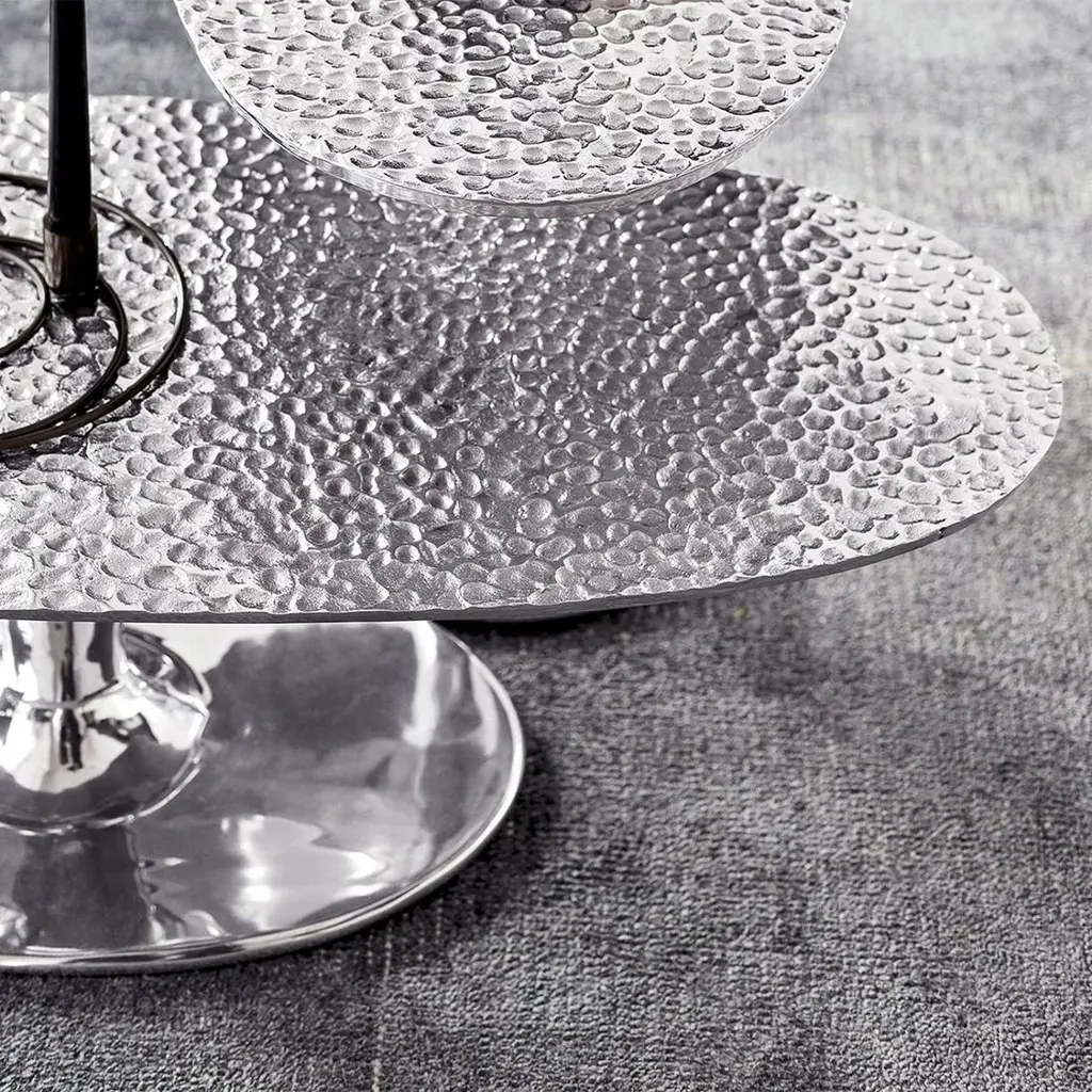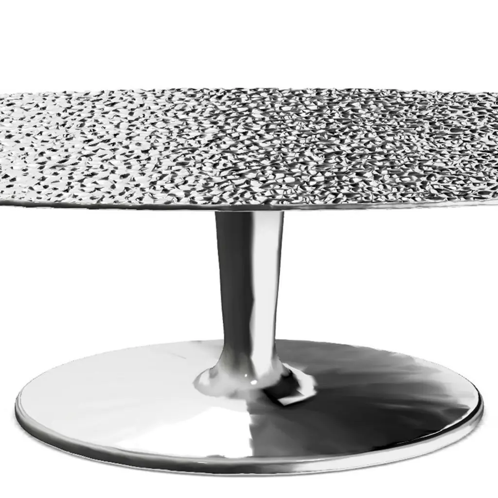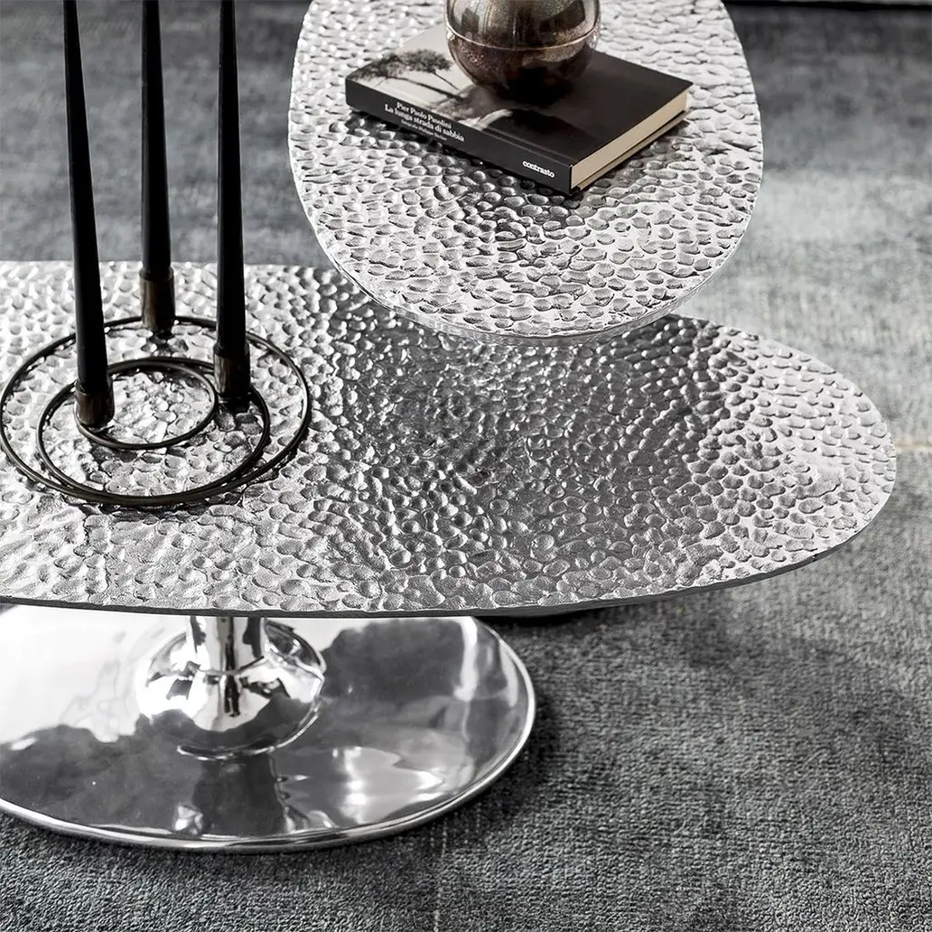 Coffee table Alu drops in polished castedaluminium. Hand-hammered aluminium.