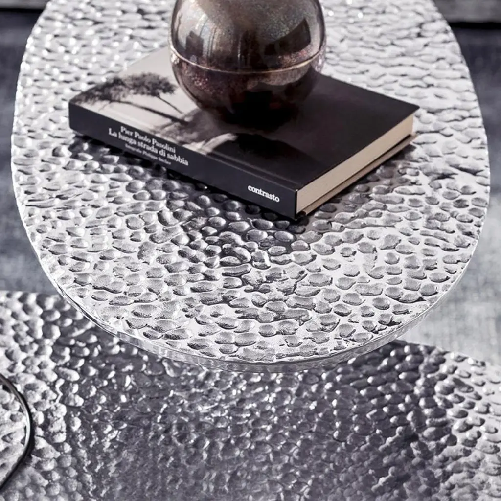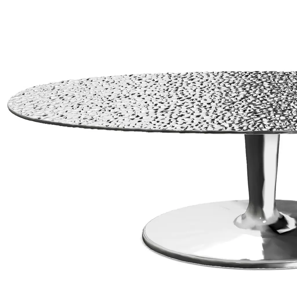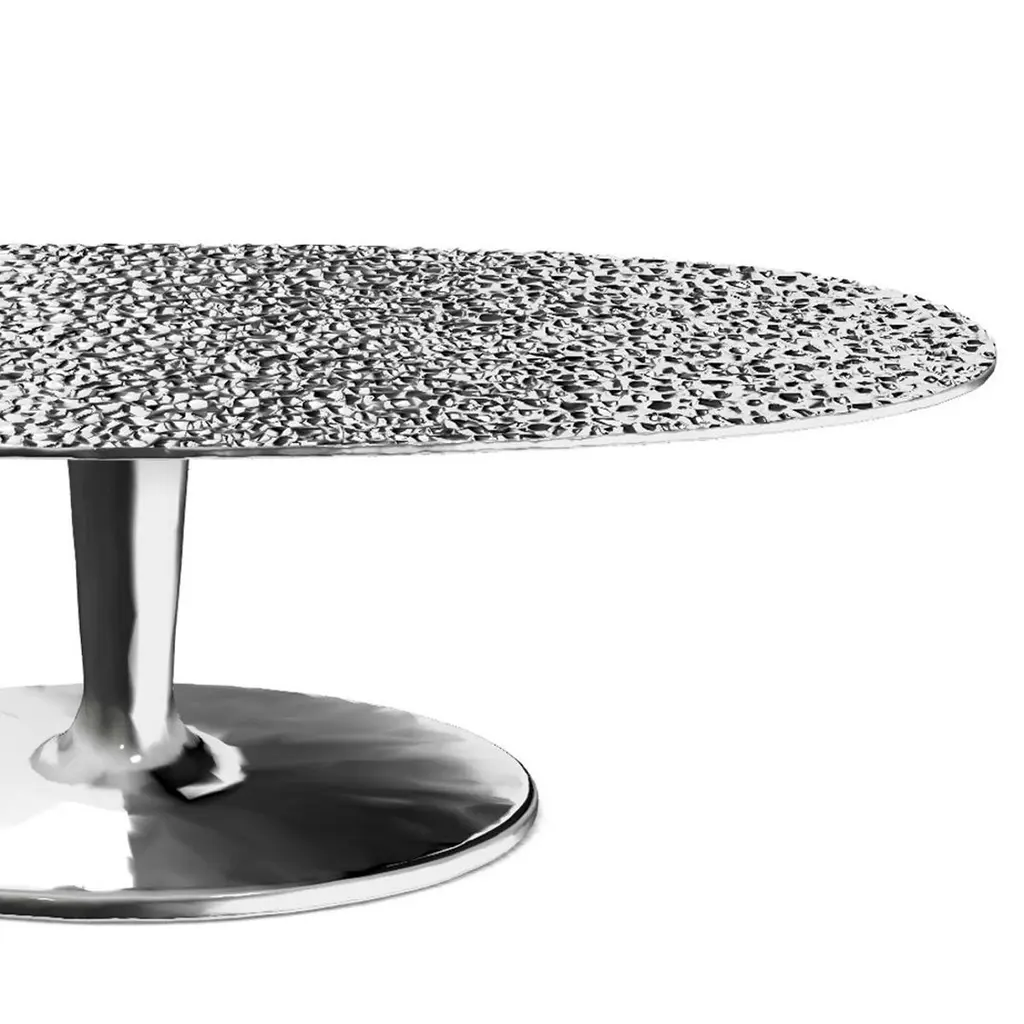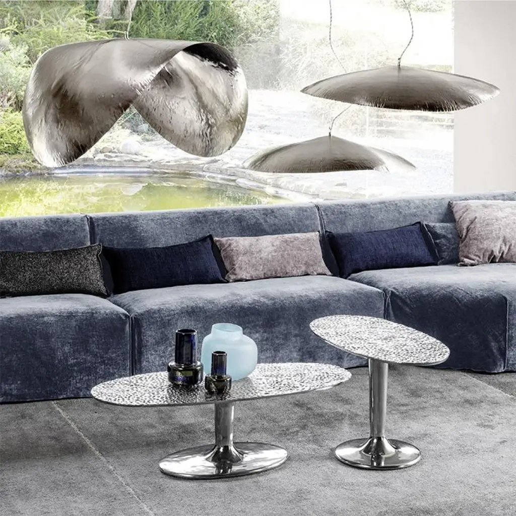 Coffee table Alu drops in polished castedaluminium. Hand-hammered aluminium.