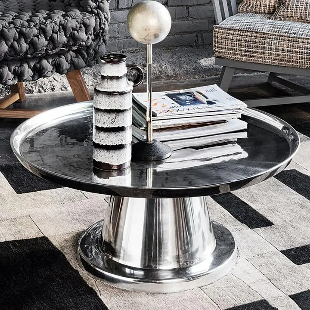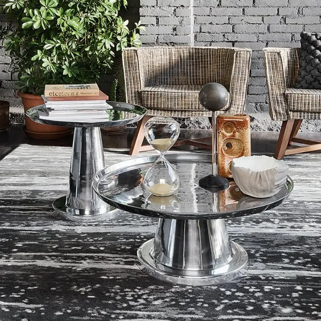 Coffee table Alu Fusion with all structurein casted fusion polished aluminium.