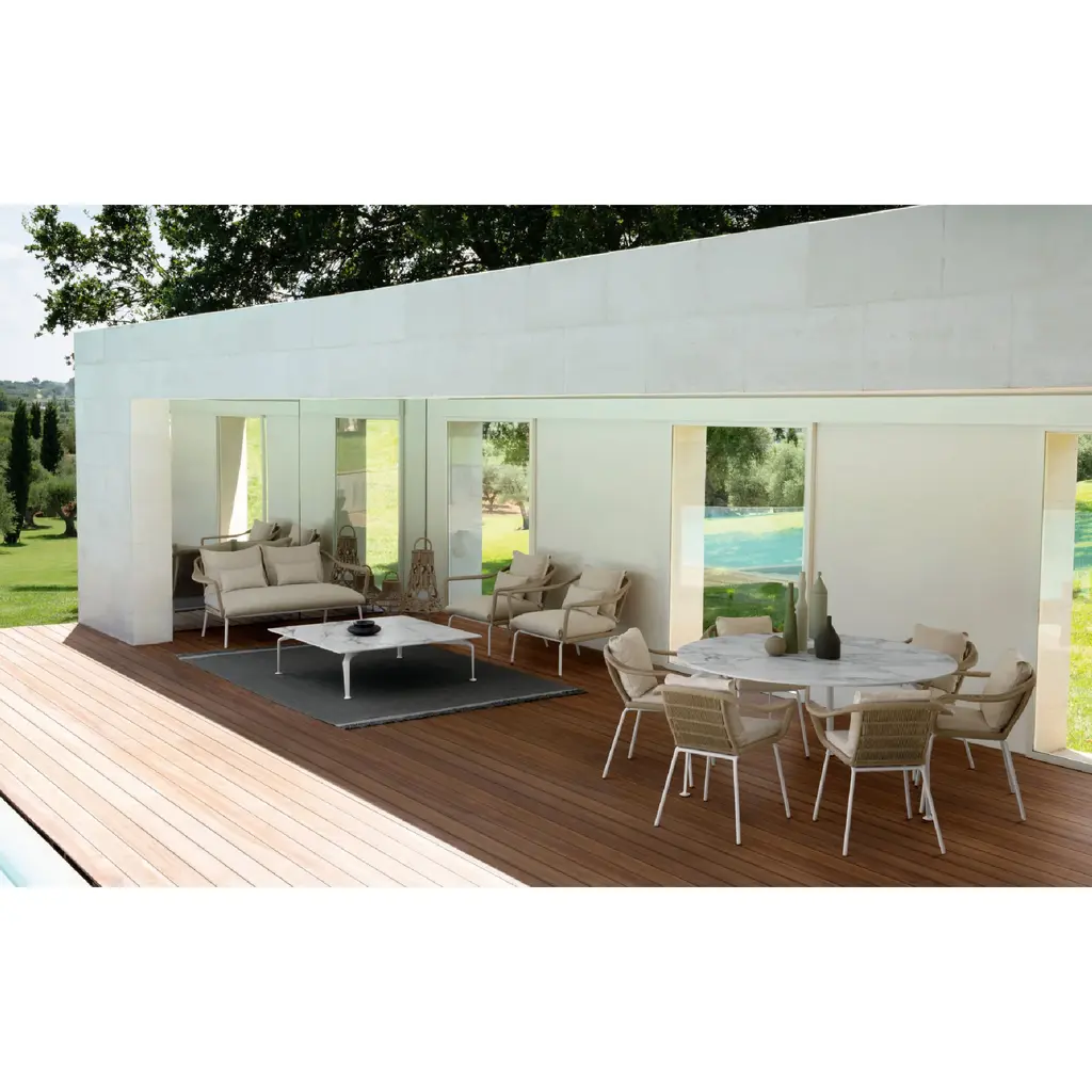 This Aluminum Modern Outdoor Coffee Table from Talenti Cruise adds a sleek and elegant touch to any outdoor space. Made entirely of high-quality aluminum, it ensures durability and stability while the large gres top provides both style and functionality. Upgrade your patio with this luxurious coffee table from the Cruise Alu Collection.