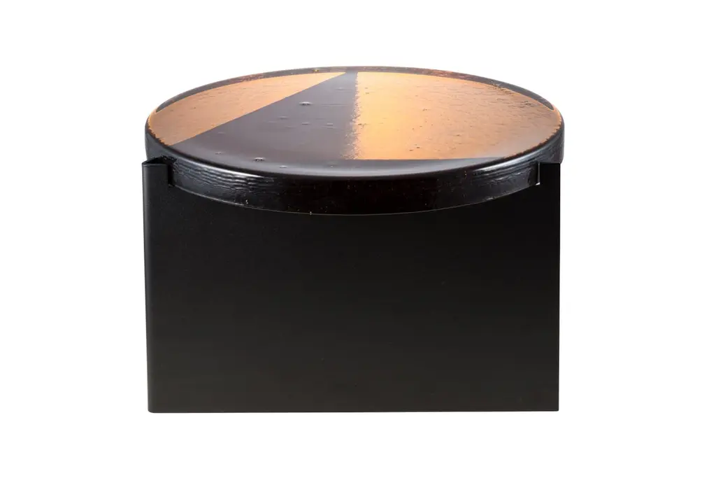 Alwa one big amber black coffee table by PulpoDimensions: D56 x H35 cmMaterials: casted glass; powder coated steel Also available in different finishes.Normally, glass is regarded as being lightweight with sharp edges. In contrast, Sebastian Herkner’s alwa is massive and possesses gentle contours. The raw, hot, glass mass with its natural bubbles is an imprint of the structure, including the uneven, sensitive surface. So nice to touch … but also ideal for placing a variety of items.Pulpo is a design editor for high-end products in the home sector.Design is our passion. Art is our engine. We are fascinated by the craft of the ceramic and glassblowing workshops and are guided by the rough aesthetics of these unique pieces.Pulpo’s philosophy goes back to the idea of ??the “carte blanche”. Our designers and artists develop their designs freely and experimentally. A variety of materials and a weakness for structures are our strengths.The headquarters of pulpo is in Weil am Rhein, near the Swiss border. Consisting of the creative and sales department, warehouse and logistics, this is the think tank for our artists and designers. pulpo’s dealer network extends far beyond Weil am Rhein – from Iceland and Dubai to Australia.Pulpo is movement – is possibility – is passion.In 2006, pulpo was founded by Ursula and Patrick L’hoste as a design brand at the interface between shape and material. pulpo’s conception is to edit lighting, furniture and accessoires on editor’s choice. The company’s focus is to conduct up-and-coming designers and selected manufacturers, using the nature of material’s to form the score. Materials such as ceramics, stone and especially glass, which is pulpo’s primary focus since 2013.