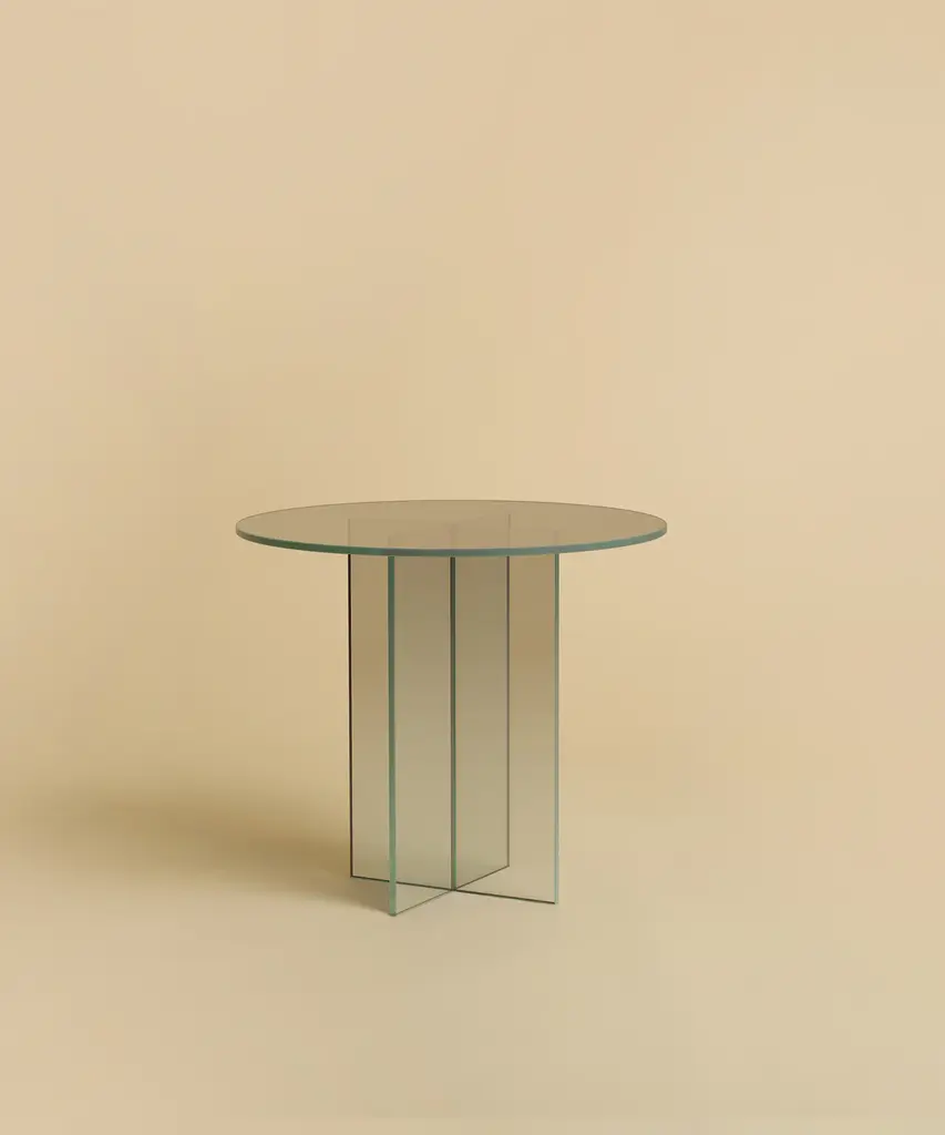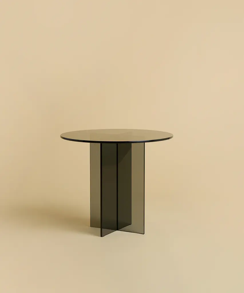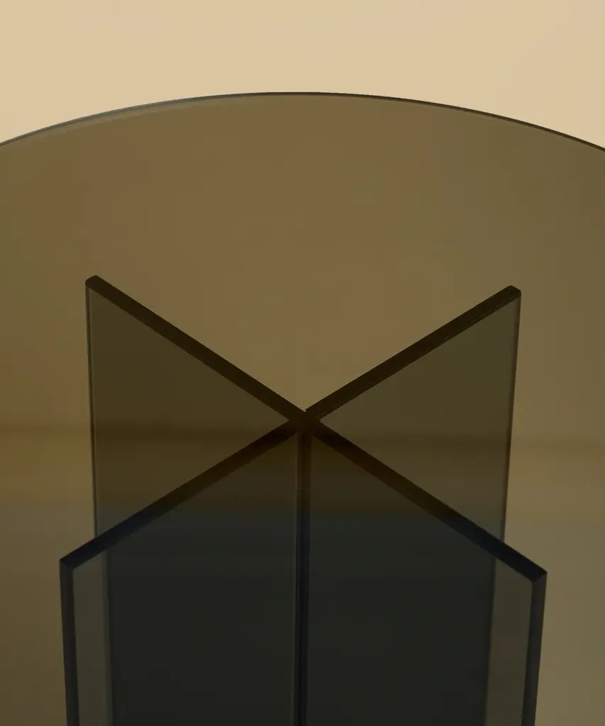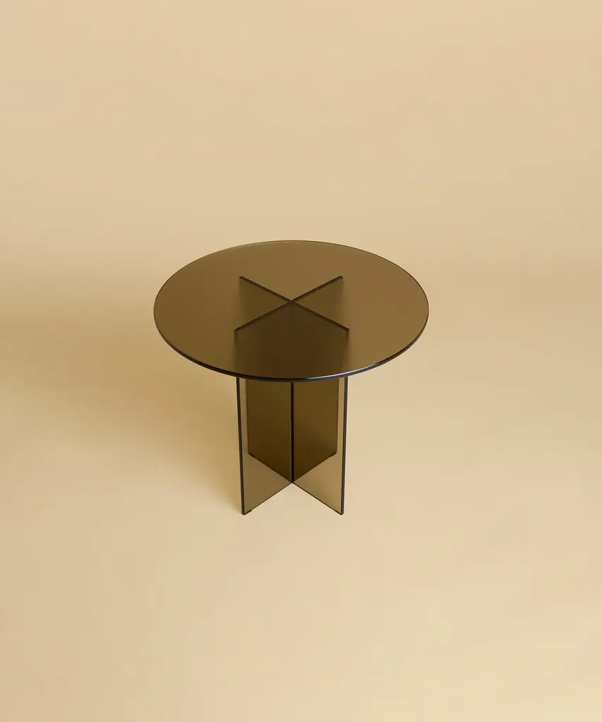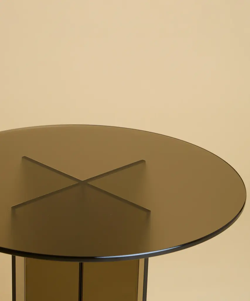 The coffee table Amami is made entirely of bronzed or smoked glass. The top is circular and 17.7 inches in diameter, while the base is obtained by gluing slightly beveled 6mm thick slabs.Founded by Emanuela Terraneo and Alessandro Pozzi, Lebanto designs and produces modern and refined furniture in Cantù, Italy.