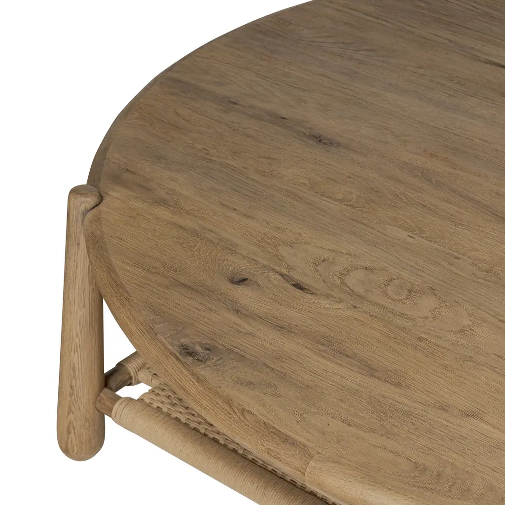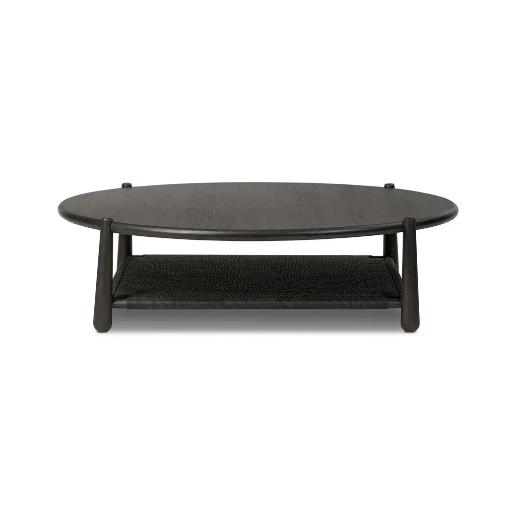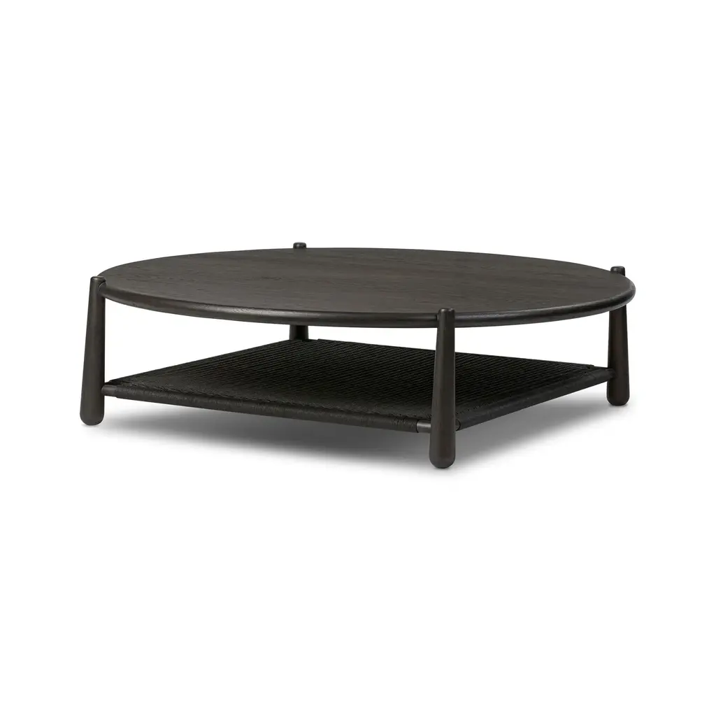 Add visual intrigue to your space with the Amber Lewis x Four Hands Salvador Coffee Table. Crafted from resawn oak with a smoked finish, this two-tier table features natural knots and heavy graining for an intriguing mix of materials. The lower shelf, woven from paper cord, adds texture and additional storage. Highlights