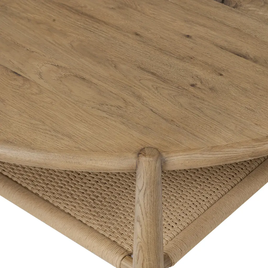 Add visual intrigue to your space with the Amber Lewis x Four Hands Salvador Coffee Table. Crafted from resawn oak with a smoked finish, this two-tier table features natural knots and heavy graining for an intriguing mix of materials. The lower shelf, woven from paper cord, adds texture and additional storage. Highlights