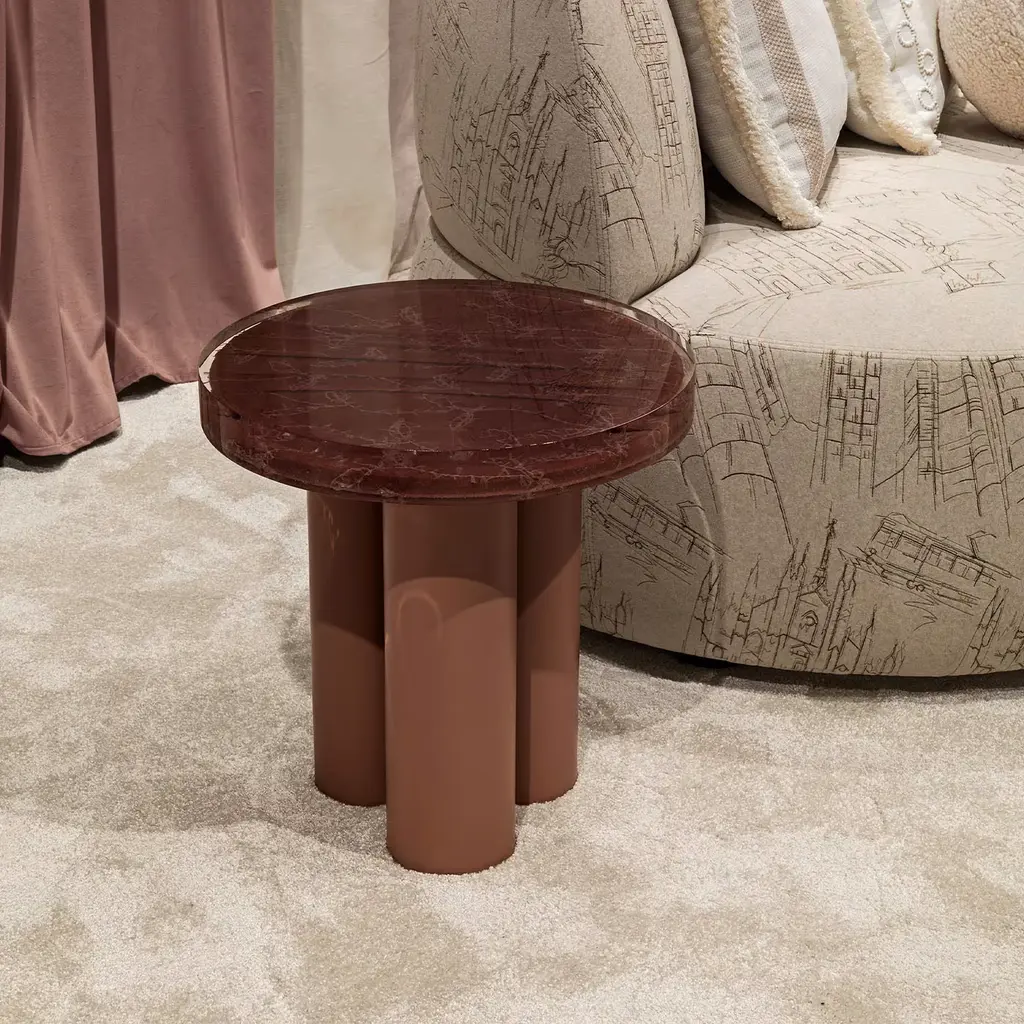 Amber Round Antiqued-Pink Metal & Resin Coffee Table