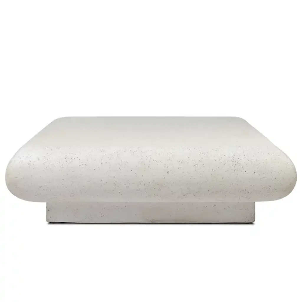 The Ambra Outdoor Coffee Table from Four Hands brings sculptural form to outdoor living with its softened square shape and sturdy plinth base inset beneath the curving edges of the top. Made from solid cast concrete in an aged finish, this table offers a bold yet versatile centerpiece for patios and open-air lounges. Designed both for durability and for modern appeal, it easily blends into contemporary and industrial settings, offering the perfect foundation for outdoor gatherings.