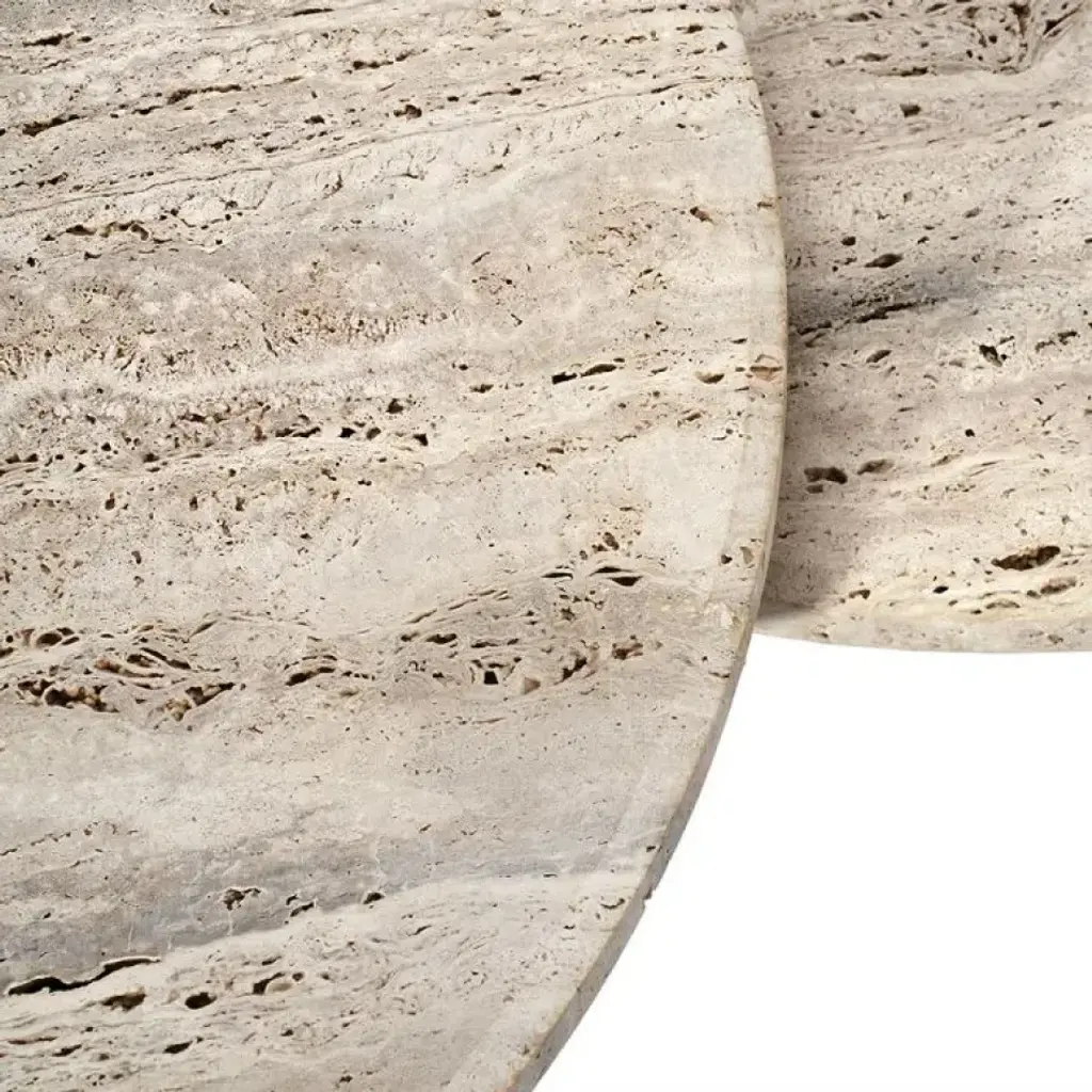 Travertine marble brings warmth and dimension to the Amerigo Cocktail Table Set, a functional and stylish duo that pair together beautifully but are just as gorgeous apart. Granite and marble are natural materials; variations in coloration, veining and texture are to be expected. Veins, smooth to the touch, are not defects, but rather natural imperfections that add to the uniqueness and charm of each piece.