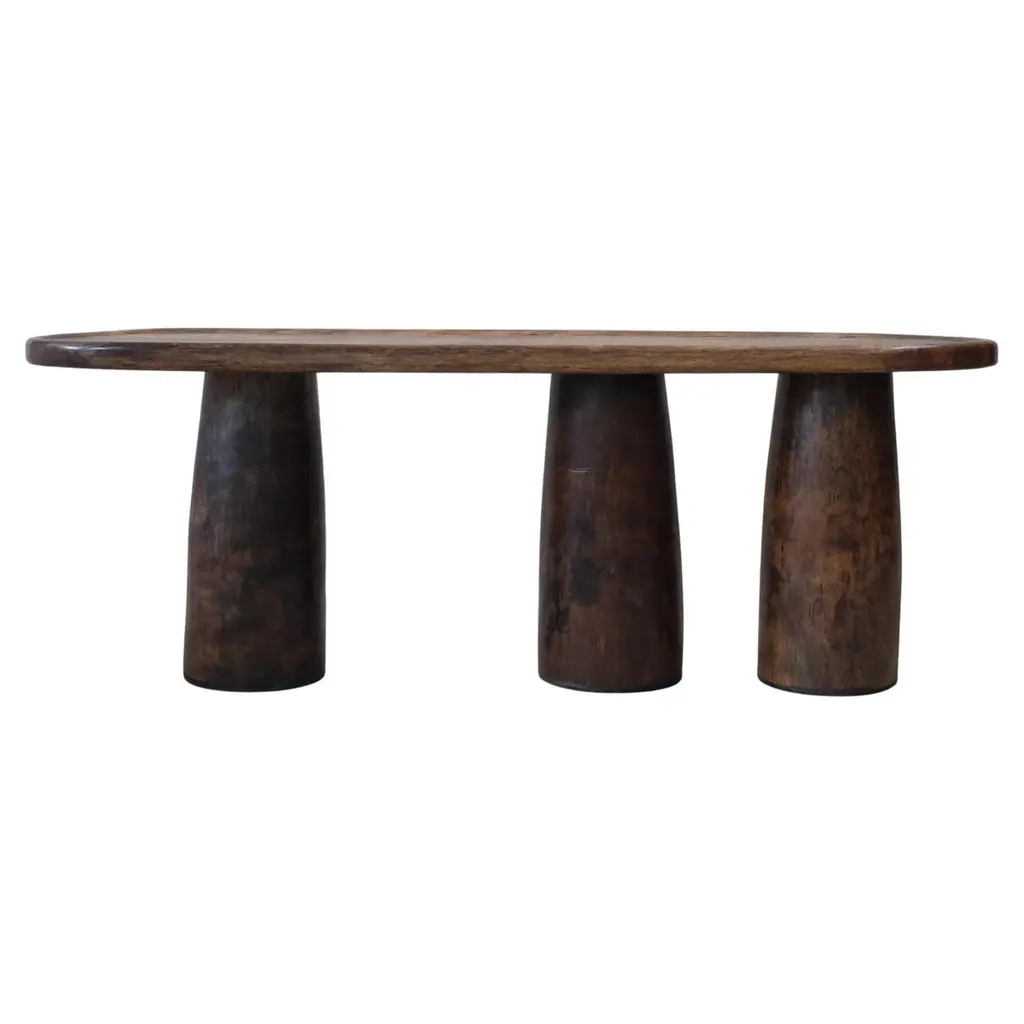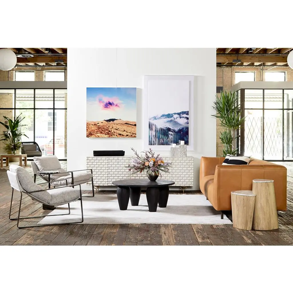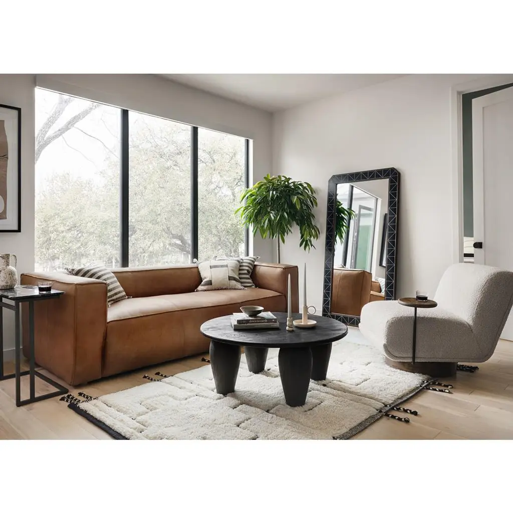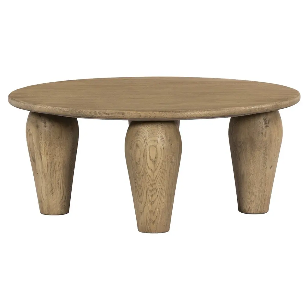 Discover the epitome of rustic elegance with the Amina Rustic Lodge coffee table, meticulously crafted from reclaimed wood in a sophisticated black finish. This round centerpiece exudes a world-traveled charm, making it a captivating addition to any contemporary or traditional living space.