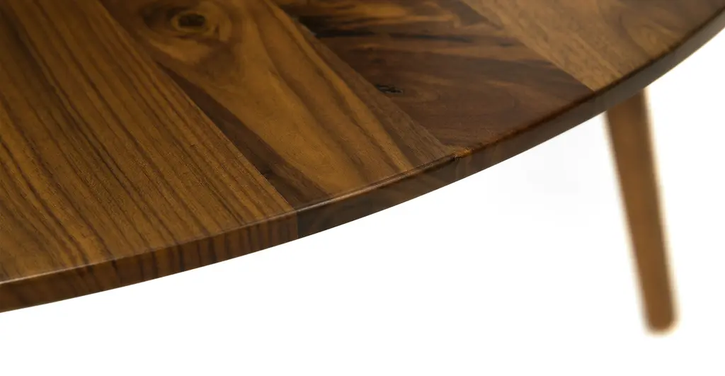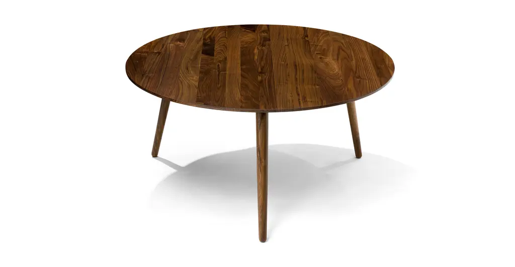 A mid-century modern design, the Amoeba Coffee table offers a pleasing focal point to your space. Several pieces of American Black Walnut are laminated together to form a beautiful table top with visible knots and color variation.
