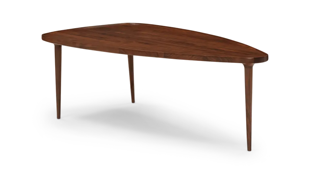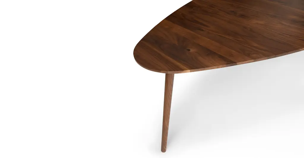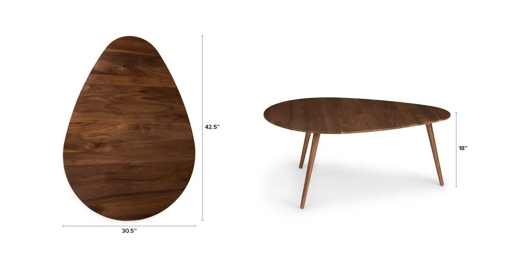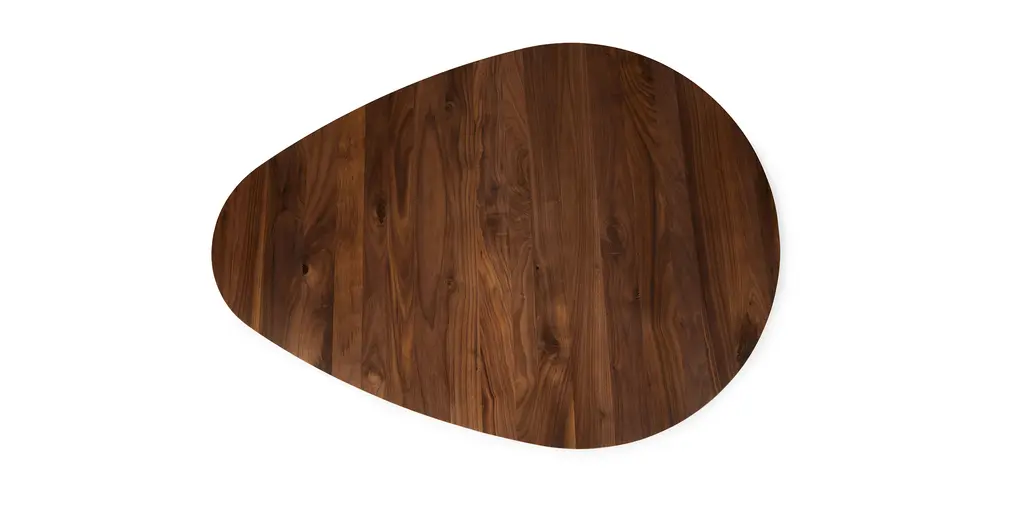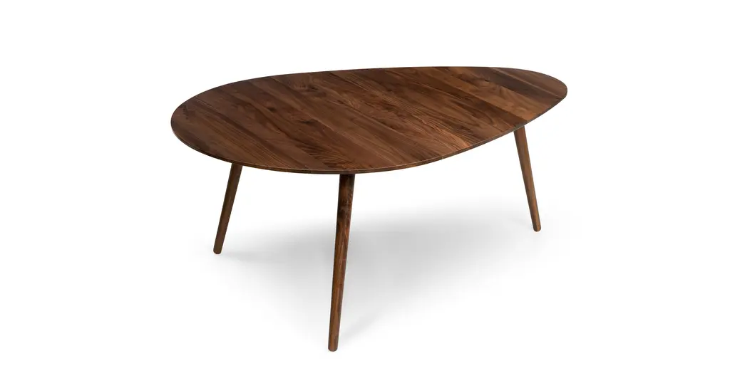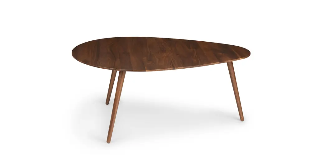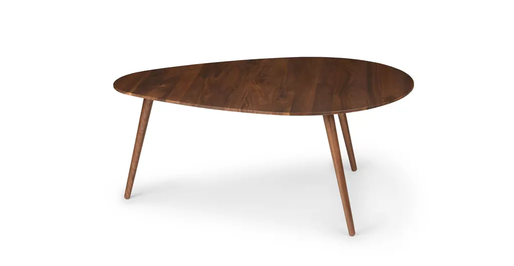 A mid-century modern design, the Amoeba Coffee table offers a pleasing focal point to your space. Several pieces of American Black Walnut are laminated together to form a beautiful table top with visible knots and color variation.