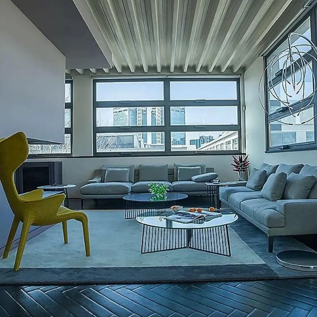 Gordon Guillaumier creates the Anapo set of tables, in the rectangular and circular version and in different sizes, also including coffee tables. Its inspiration lies in the sixties and in a specific idea of middle-class home torn between rigour and softness, luxury and functionality, indifferent to passing fads. The project also includes three coffee tables.The Anapo table designed by Gordon Guillaumier for Driade has a black painted tubular steel structure, that enriches the look sculptorially through a semitransparentn effect that gives tension to the space. It is completed by a top that can be in chestnut or makassar ebonized wooden finish MDF or tempered glass 15mm, or only for the 250x150cm size in white Calacatta Carrara marble. An idea, inspired by the '60s, for a middle class house, that is torn between functionality and luxury, rigour and softness, for a timeless elegance.