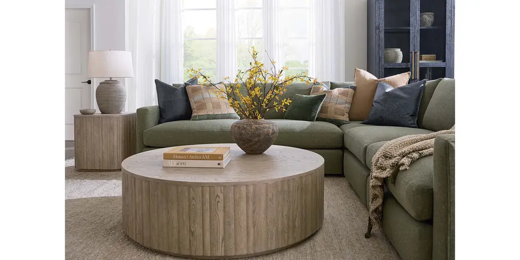 Offering a sophisticated nod to 1970s style, our Andora Round Plinth Cocktail Table is the ideal partner for rooms designed with a larger sofa or sectional layout. The irregular vertical reeding wraps completely around the 48"D surface. Floating on its plinth base, the round cocktail table provides all the tabletop surface you need with no shin-bumping edges. The neo-rustic, ton-sur-ton textured oak is available in three finishes.