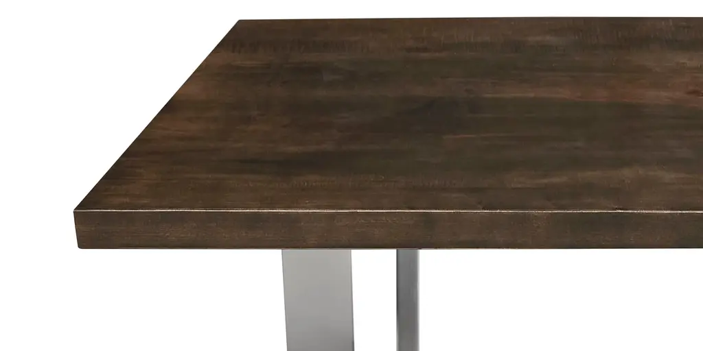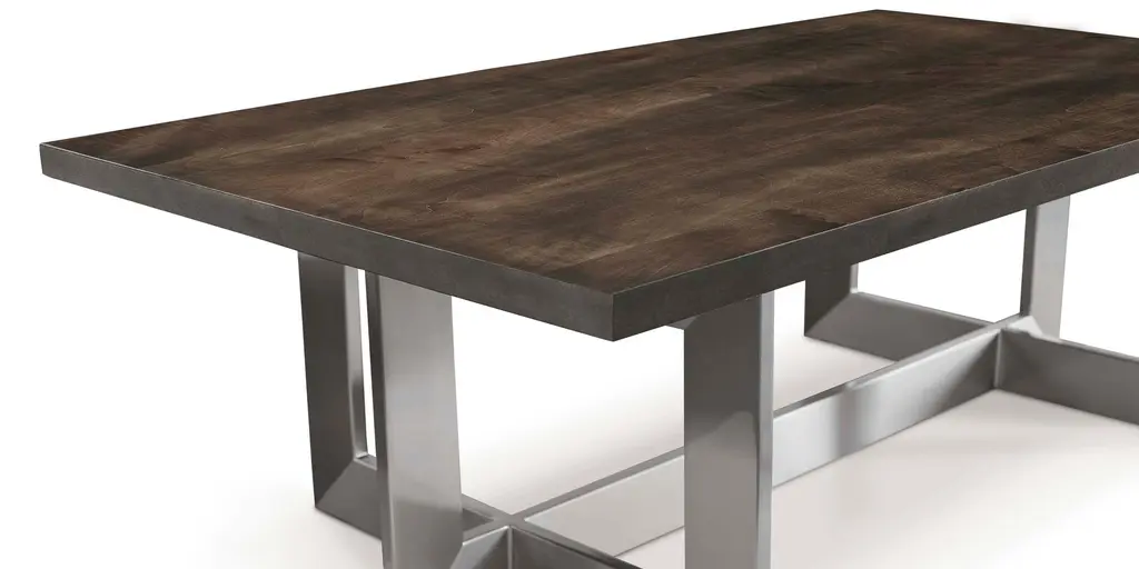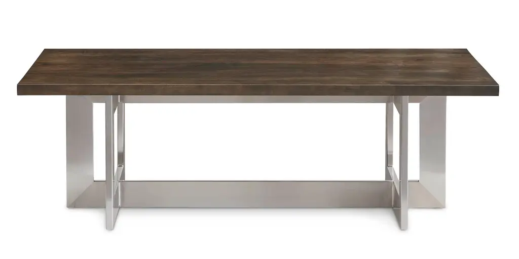 Metal or wood? Angles or curves? Why settle for one when you can marry both together? The Benchmade Andover round cocktail table pairs the soft, natural beauty of solid American maple with a sleek brushed stainless metal base. At the center of your seating arrangement, this hand-crafted cocktail table, with a 1.25-inch thick top, offers a smooth, refined touch. Hidden levelers ensure that the table sits evenly, regardless of the surface. Select any Benchmade maple finish to compliment your room.
