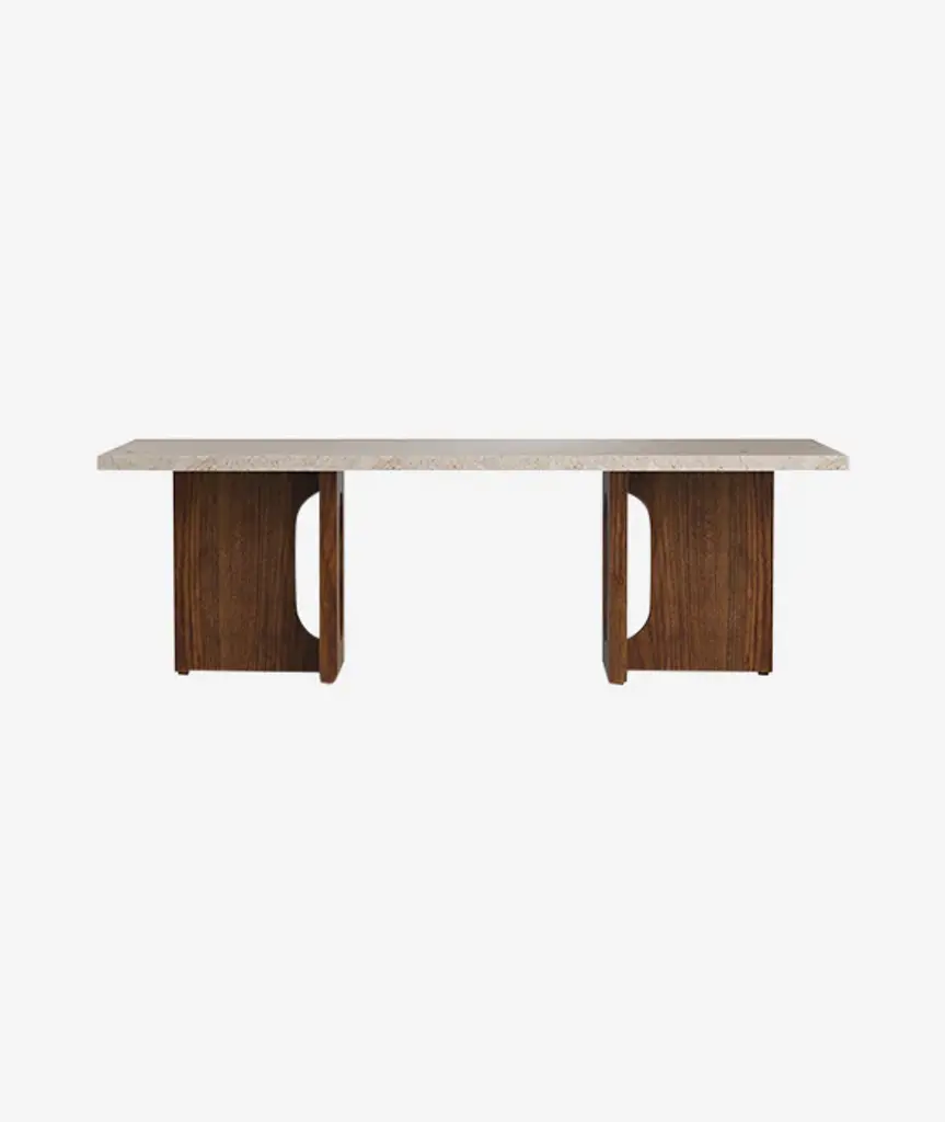 Audo Copenhagen’s Androgyne Collection is distinguished by its playful, yet elegant silhouette and considered combination of natural materials. The invention of the Copenhagen-based Norwegian architect and designer Danielle Siggerud, its blend of the masculine and feminine – true androgyny – is what lends the collection its name. The bold and confident take on a coffee table amplifies the silhouette of the collection’s popular side table to grander proportions. Celebrating craftsmanship and wood, the Androgyne Lounge Table is versioned in natural oak or dark stained oak or walnut, as well as with the option of a kunis breccia stone tabletop.