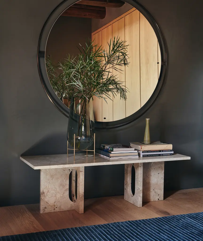 Audo Copenhagen’s Androgyne Collection is distinguished by its playful, yet elegant silhouette and considered combination of natural materials. The invention of the Copenhagen-based Norwegian architect and designer Danielle Siggerud, its blend of the masculine and feminine – true androgyny – is what lends the collection its name. The bold and confident take on a coffee table amplifies the silhouette of the collection’s popular side table to grander proportions. Celebrating craftsmanship and wood, the Androgyne Lounge Table is versioned in natural oak or dark stained oak or walnut, as well as with the option of a kunis breccia stone tabletop.