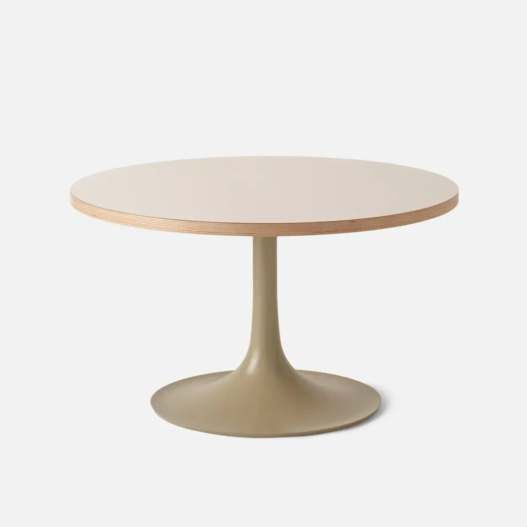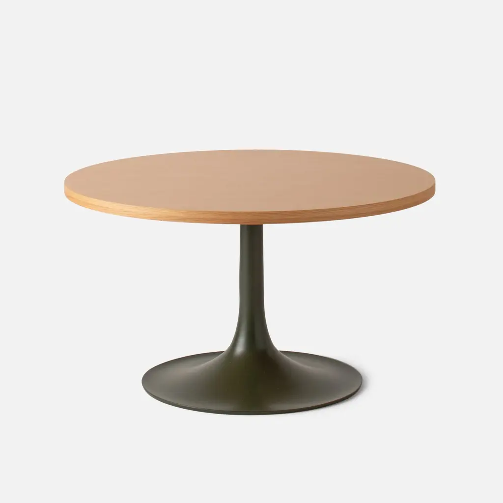 A fresh spin on a vintage classic, the Andy Coffee Table blends iconic ’60s design with modern materials and rich, earthy finishes. Its cast aluminum pedestal base - with a graceful trumpet flare - is available in satin-finished tones that feel like they’ve been lifted straight from a well-loved retro palette. Topped with your choice of parchment-hued laminate edged in warm plywood or sleek white oak veneer, this table balances artful style with everyday usefulness.