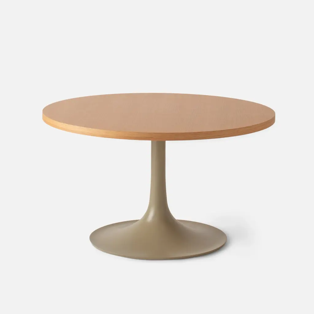 A fresh spin on a vintage classic, the Andy Coffee Table blends iconic ’60s design with modern materials and rich, earthy finishes. Its cast aluminum pedestal base - with a graceful trumpet flare - is available in satin-finished tones that feel like they’ve been lifted straight from a well-loved retro palette. Topped with your choice of parchment-hued laminate edged in warm plywood or sleek white oak veneer, this table balances artful style with everyday usefulness.