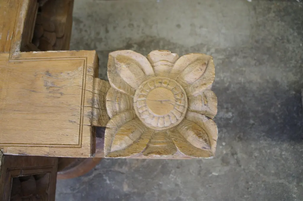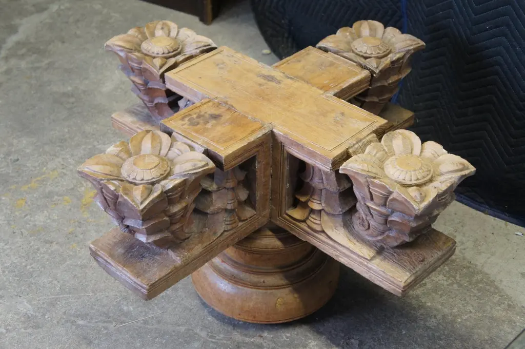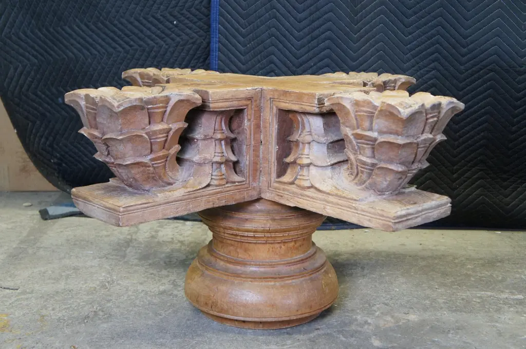 Antique Architectural Reclaimed Teak Ornamental Temple Pedestal Coffee Table