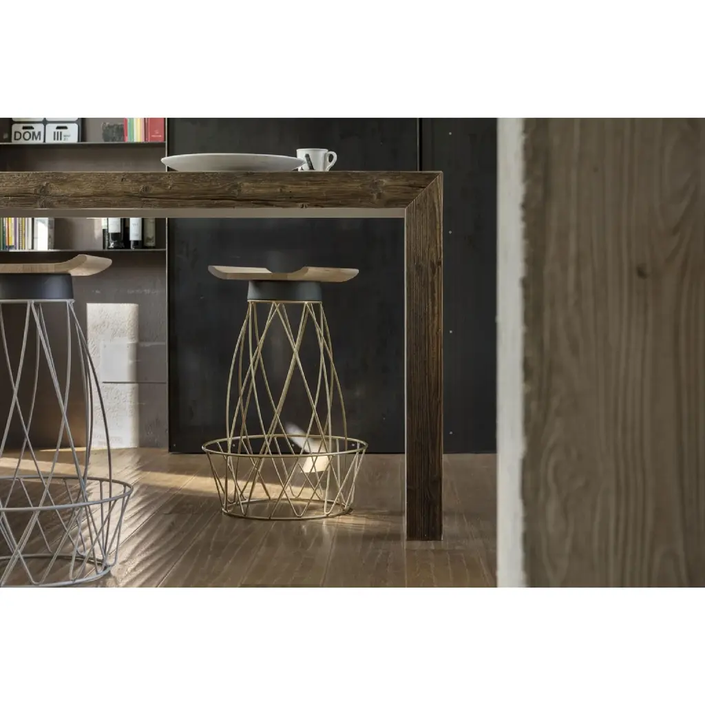 Indulge in the timeless beauty of our Antique Larch Wood Coffee Table - Mogg Zio Tom. Crafted with recycled antique larch wood, this table features essential lines and a warm wooden soul. Its irregularities only add to its unique character. The inner sides of the legs and the underside of the top are delicately lacquered in colors of your choice. Elevate your living space with this elegant and exclusive piece.